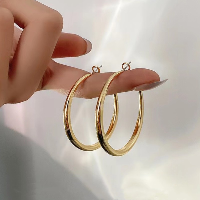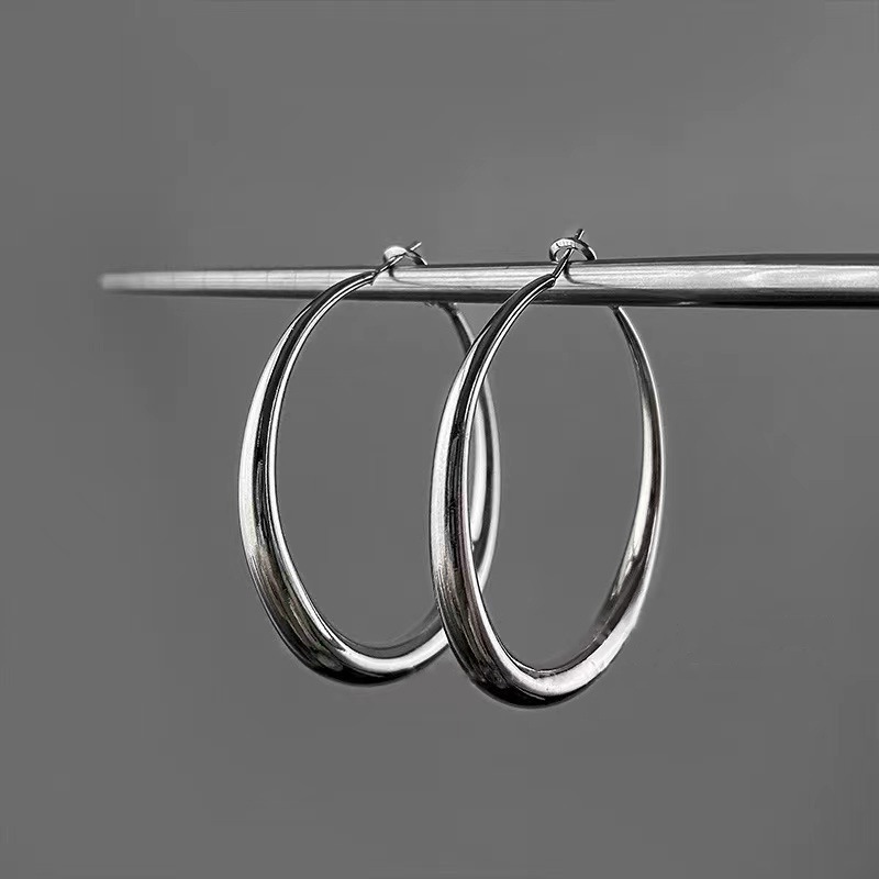 South Korea Internet Popular Big Earrings 925 Silver Pin Fashionable Cold Style Ins Simple Earrings Women's Atmospheric Circle Earrings