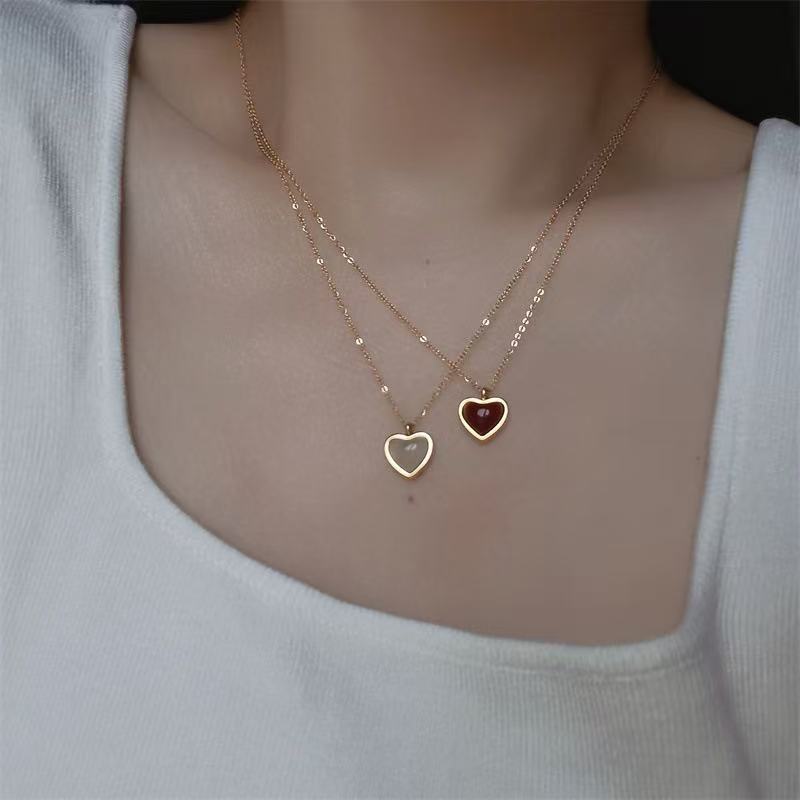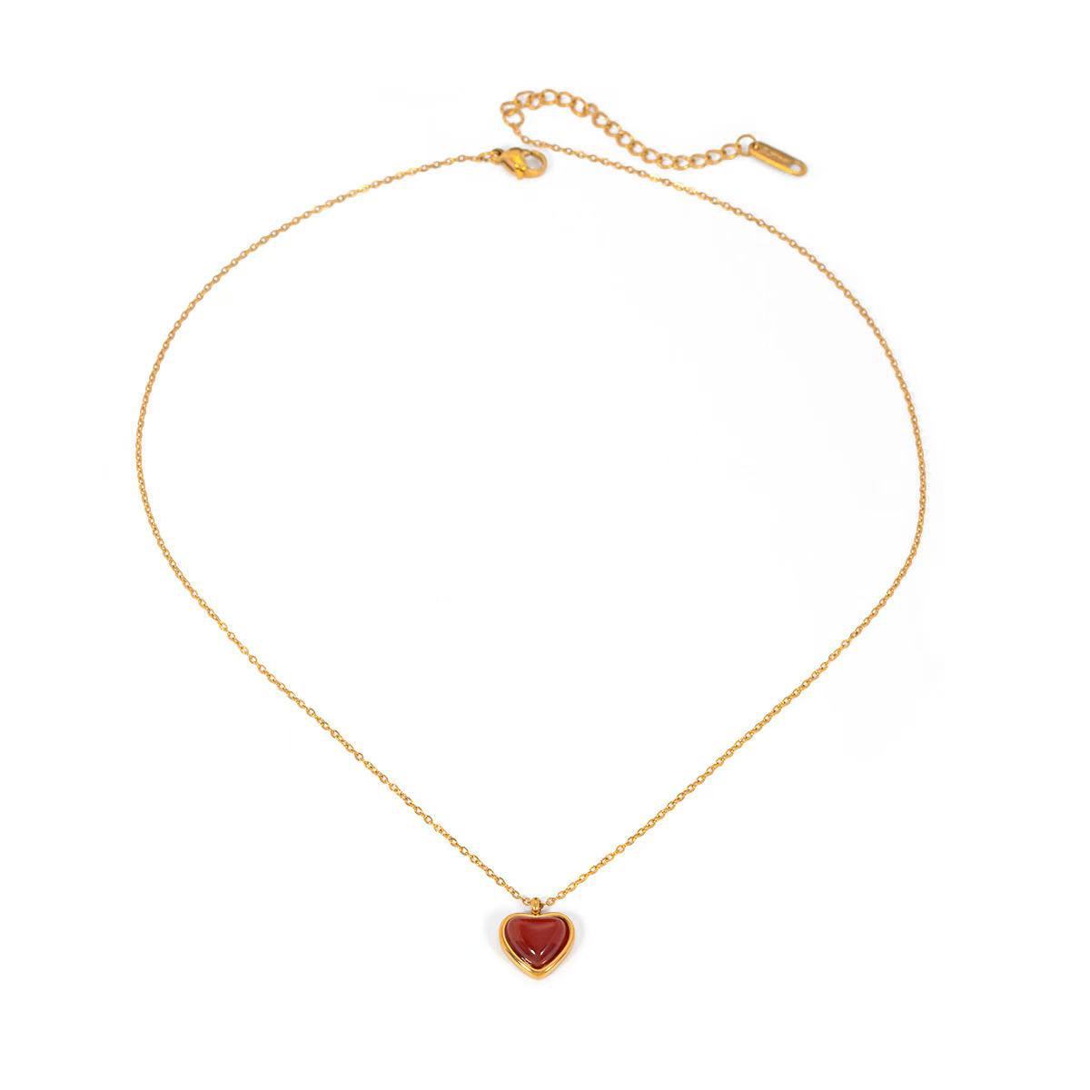 Love Necklace 18K Gold Fadeless Red Agate Peach Heart Titanium Steel Necklace Niche Ins Elegant Clavicle Chain Jewelry