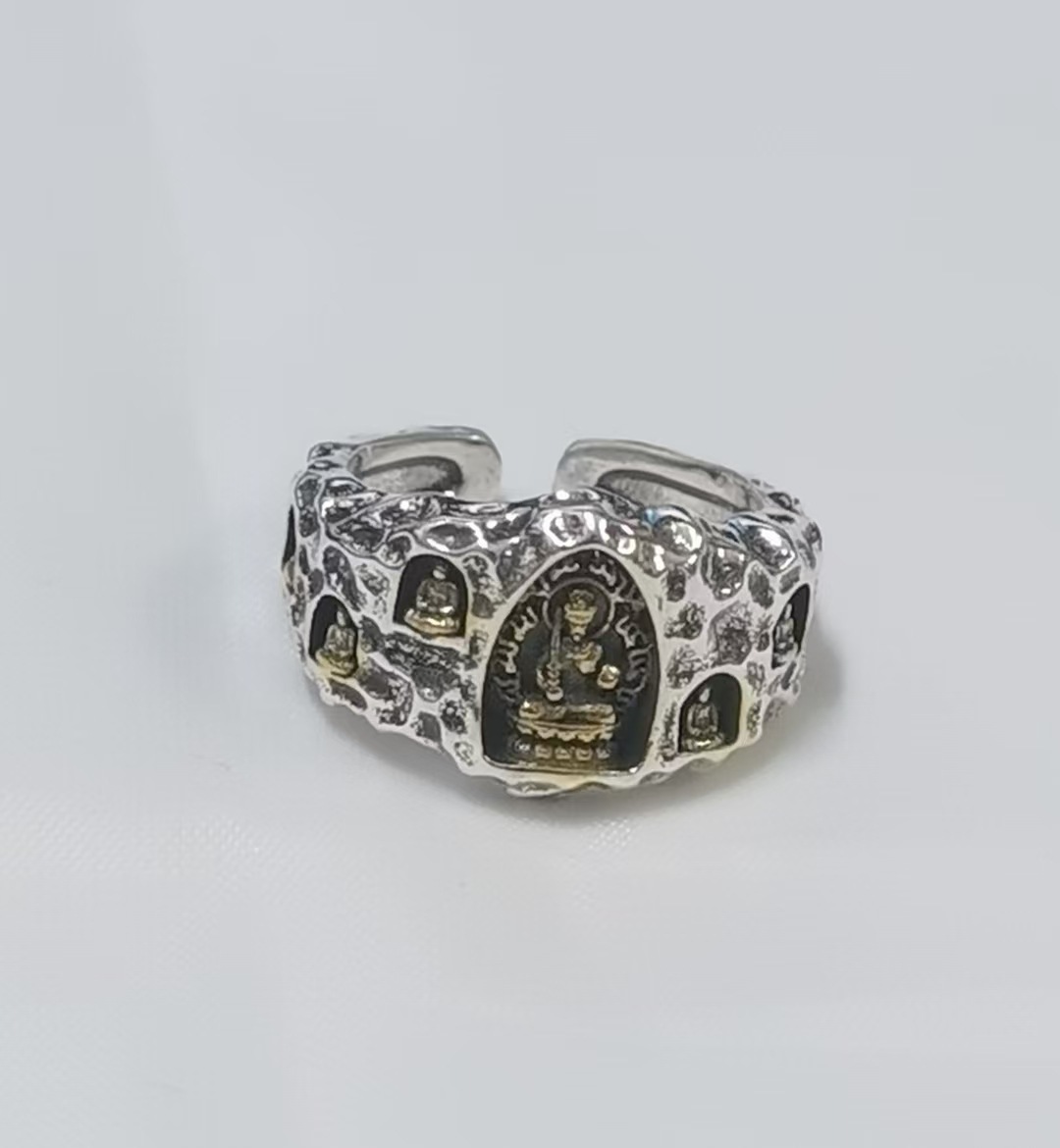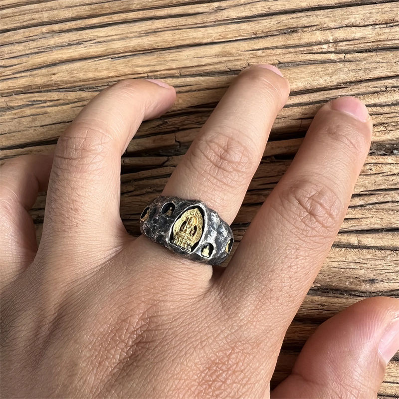 Twelve Zodiac Eight Patron Rings Golden Buddha Grotto Hand Forged Hammer Finger Ring Distinctive Retro