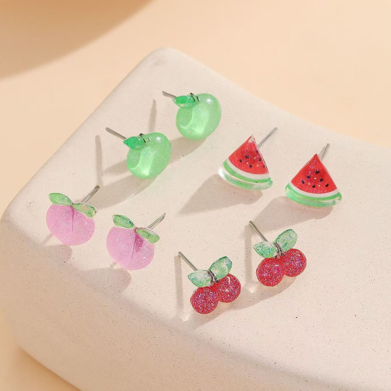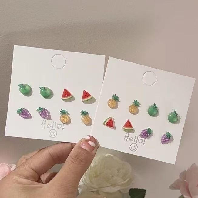 Fruit Colorful Earrings Transparent Cute Cartoon Earrings Fresh Sweet Fun All-match Color Ear Bone Nail Earrings