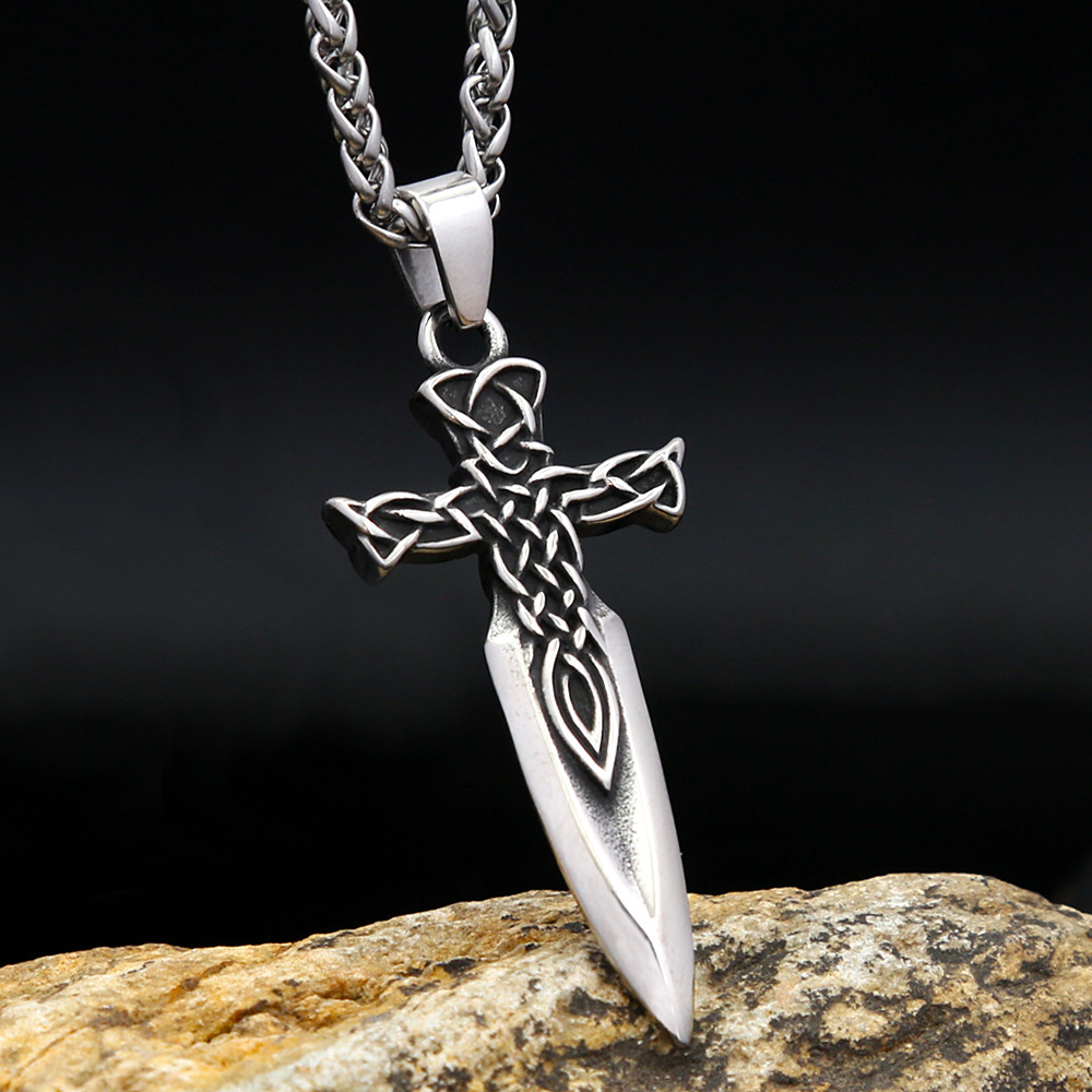 Cross-border Amazon Europe and the United States carved Viking Celtic knot sword pendant men's titanium steel hip-hop personality necklace