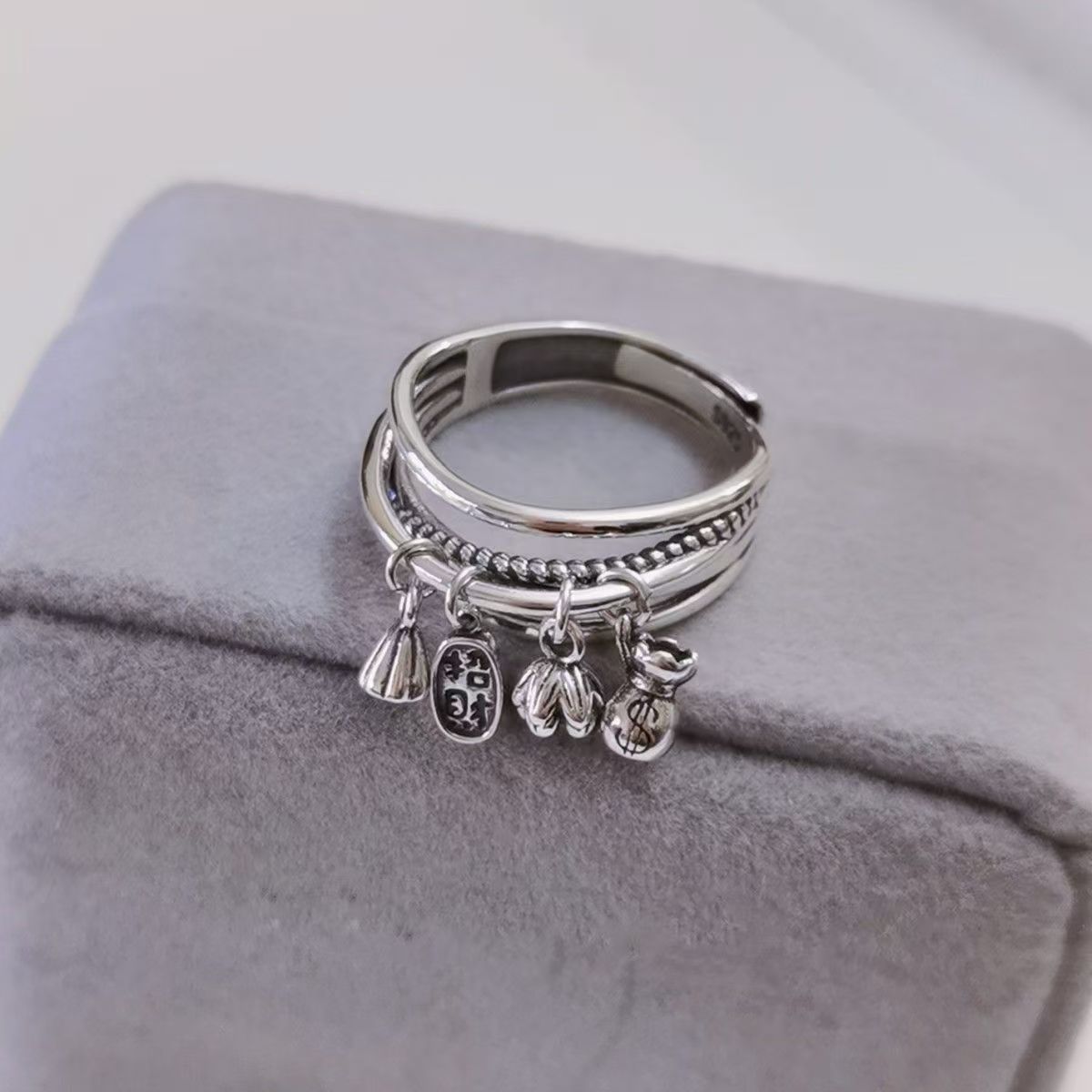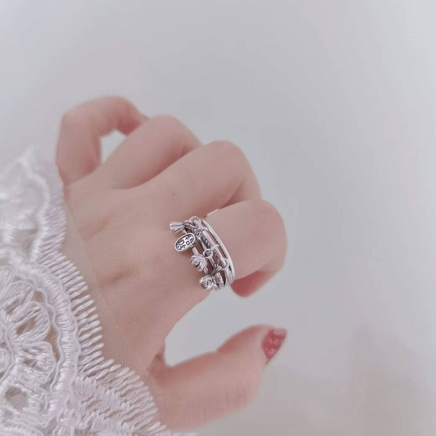 Xinqi Jewelry Lotus Lotus Nafu Ring Women's Fashion Simple Trend Personalized Multi-layer Tassel Open Finger Ring