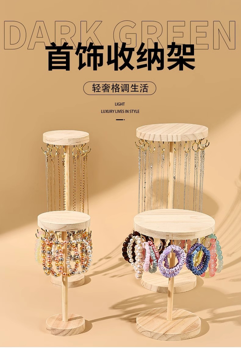 Round Solid Wood Bracelet Bracelet Necklace Display Shelf Stall Jewelry Hanging Rack Jewelry Necklace Display Rack