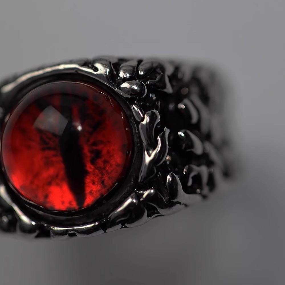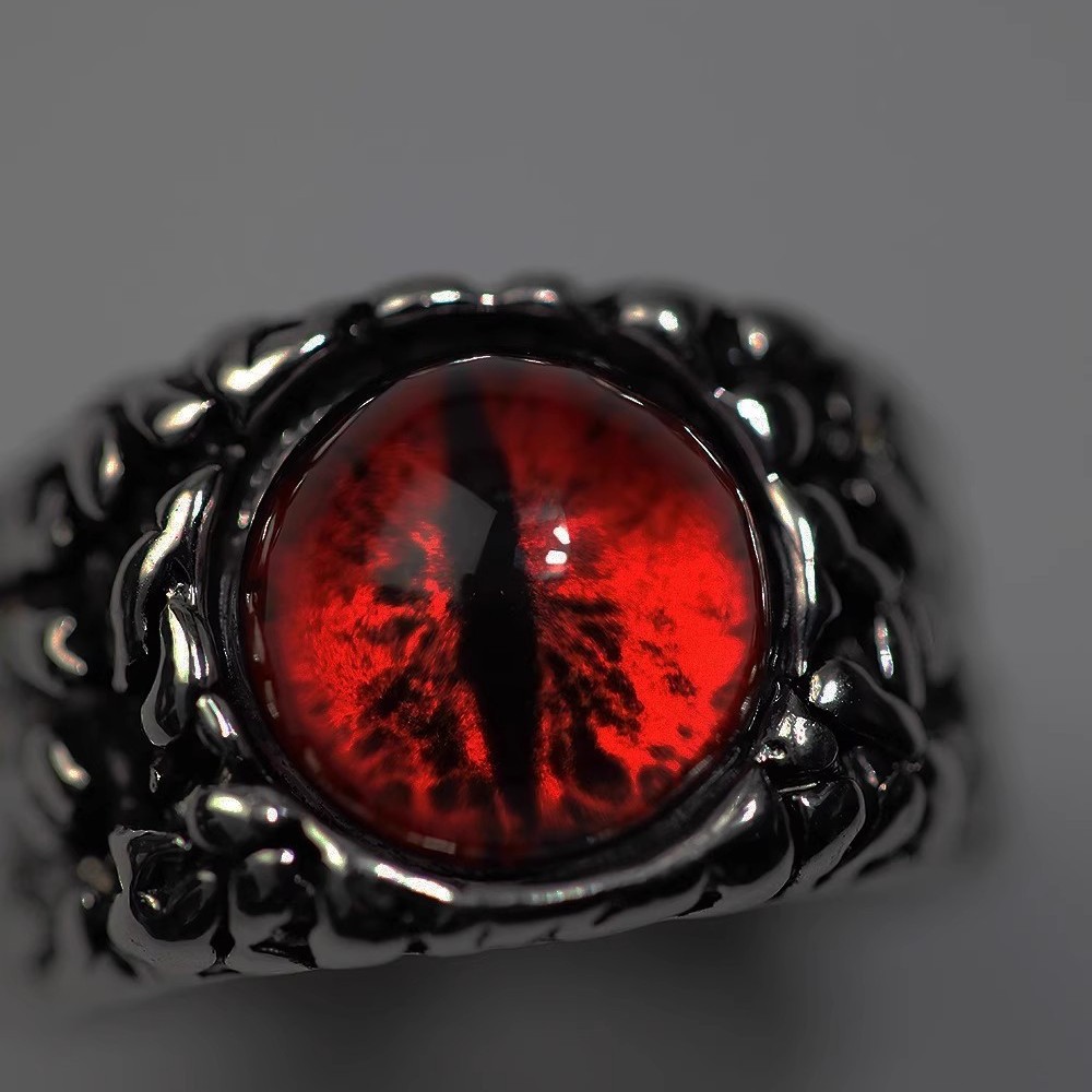 2024 New Style Retro Personality Domineering Red Eyeball Dark Eyes Opening Adjustable Ring Hip-Hop for Men and Women