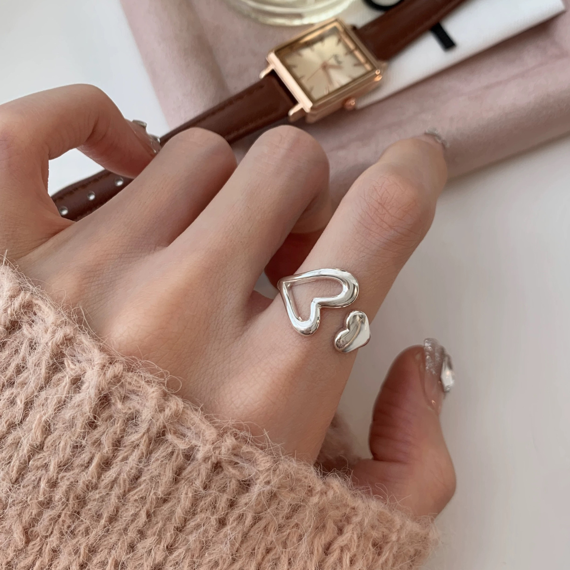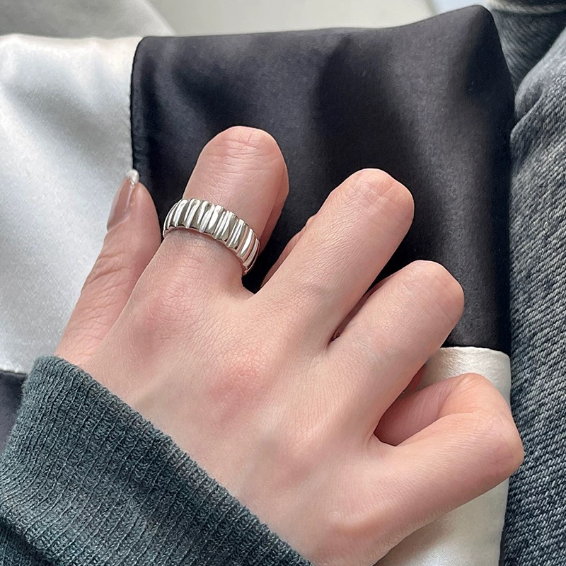 Niche Retro S925 Sterling Silver Plain Ring Ring Women's Color-free Light Luxury High-end Finger Ring All-match Open Ring