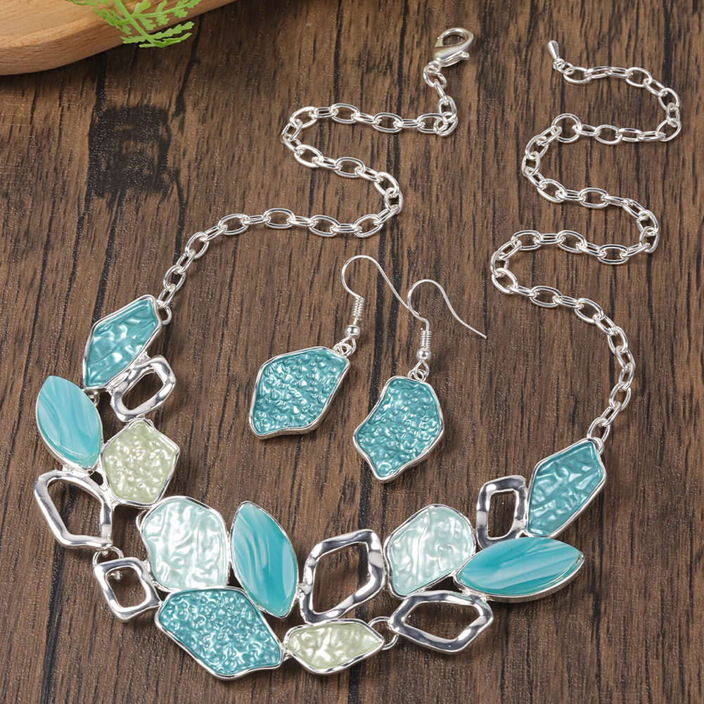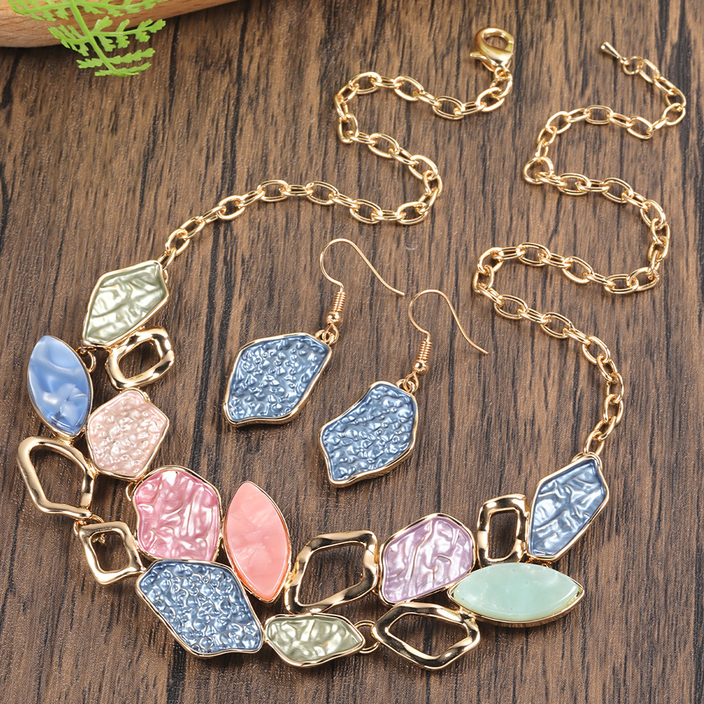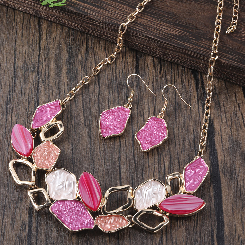 Style: Oil dripping necklace and earrings set