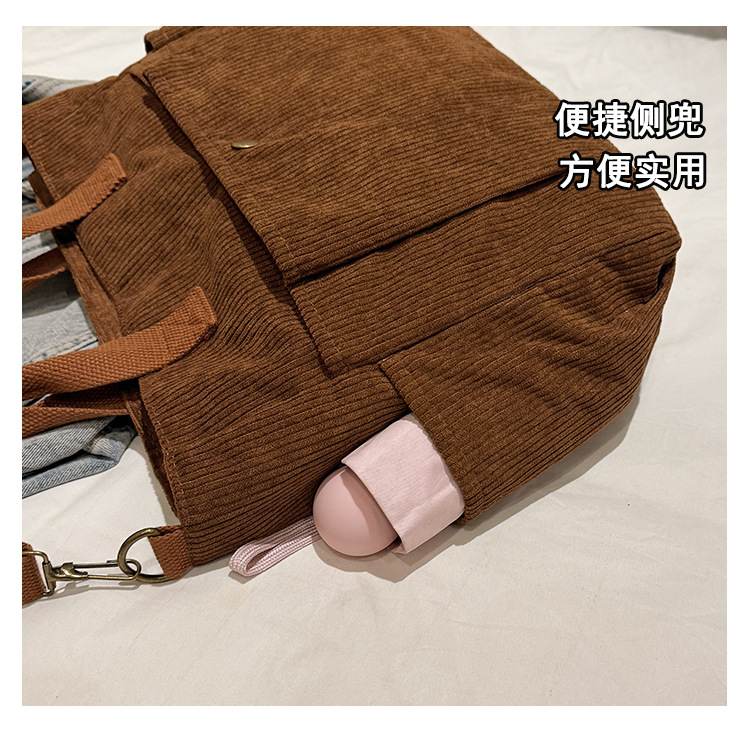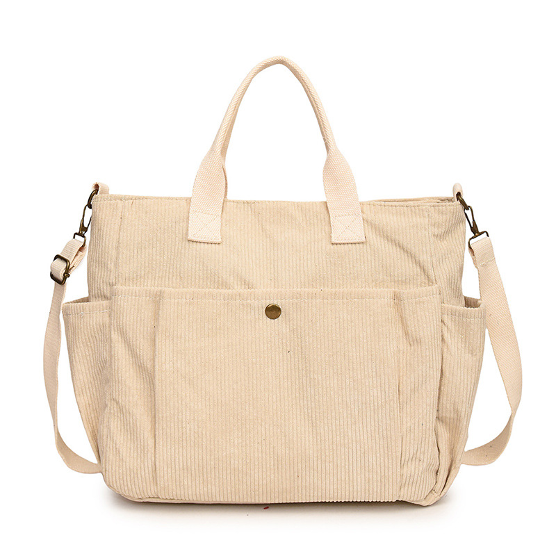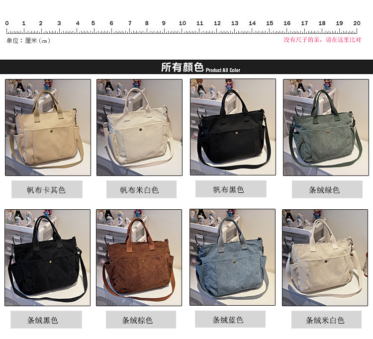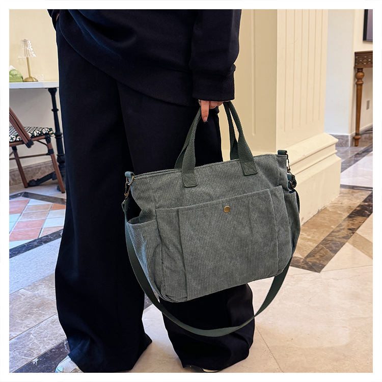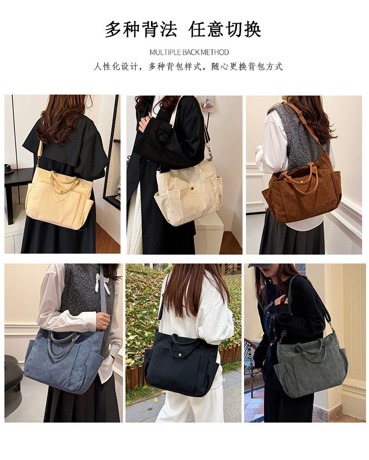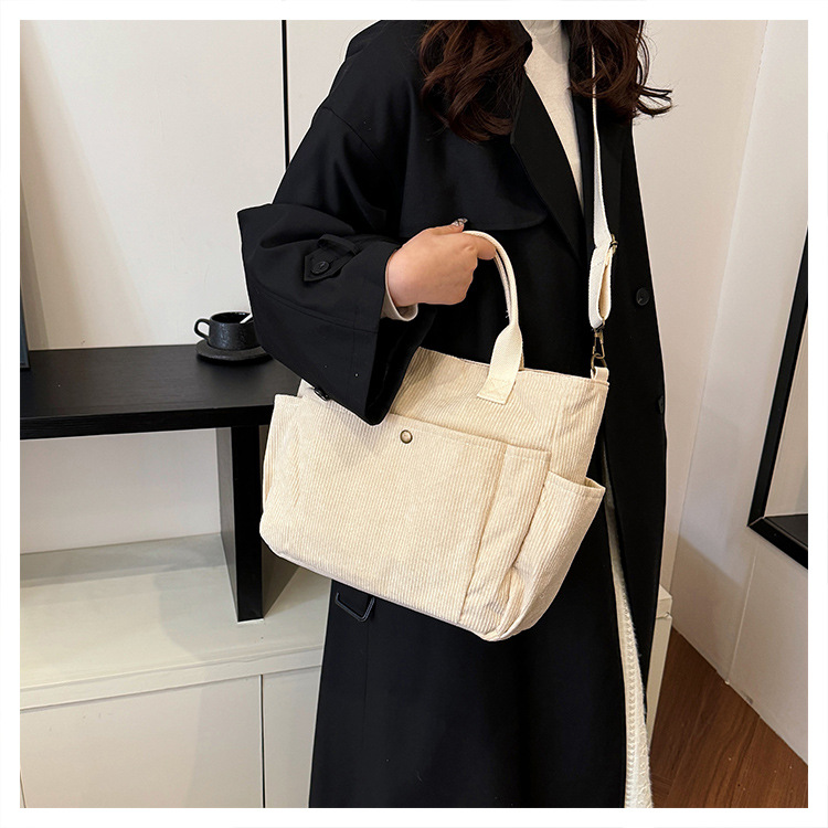 Simple Canvas Bag Women's Tote Bag Large Capacity Commuter Corduroy College Student Crossbody Bag Work Shoulder Bag
