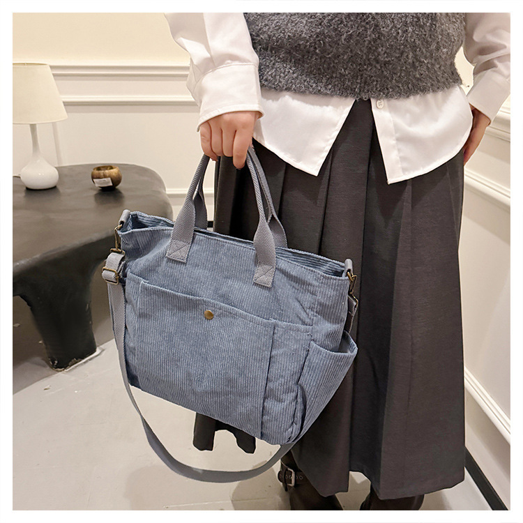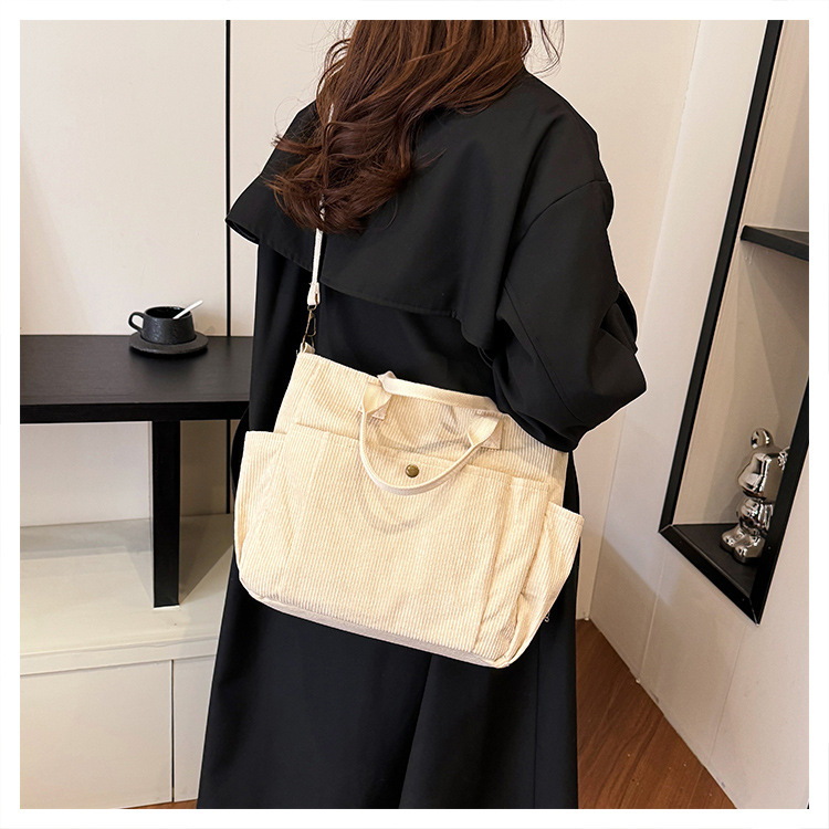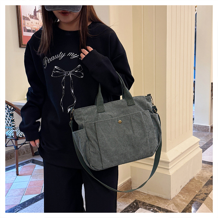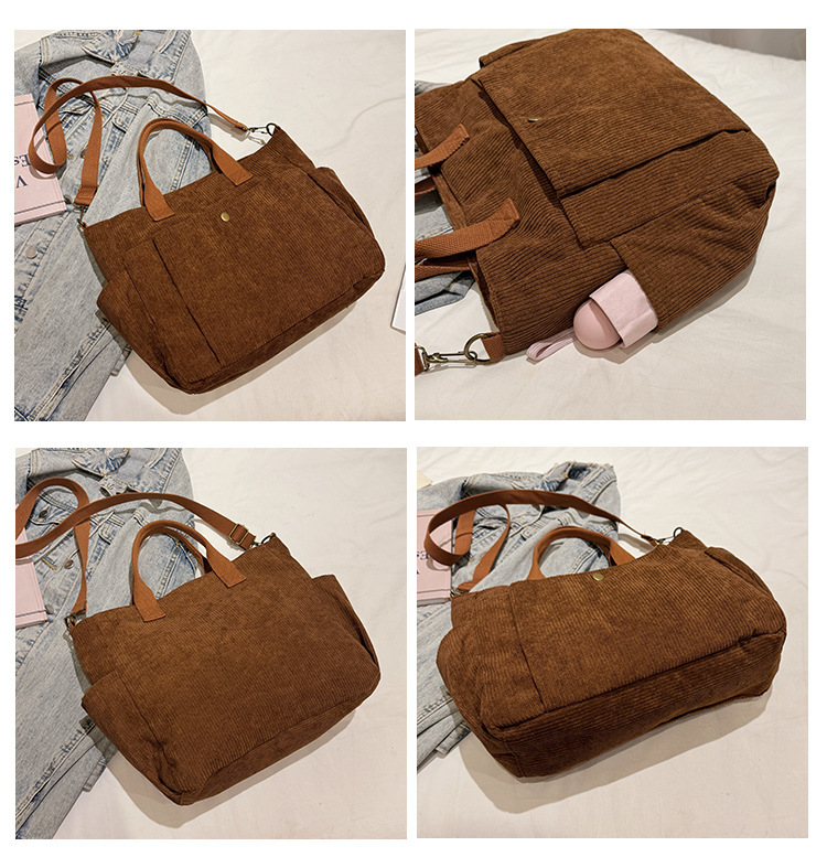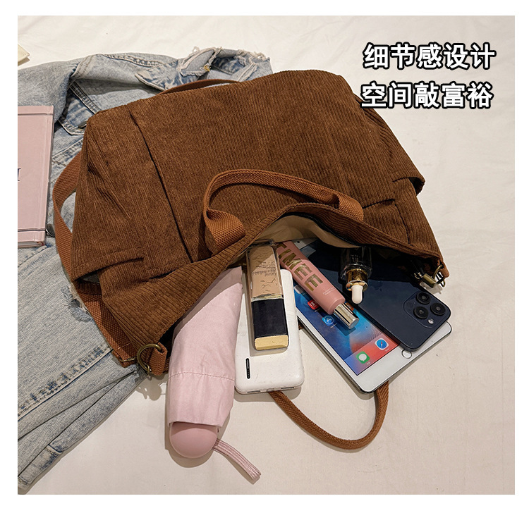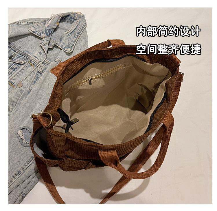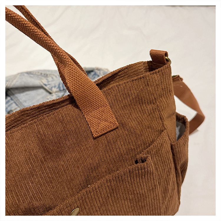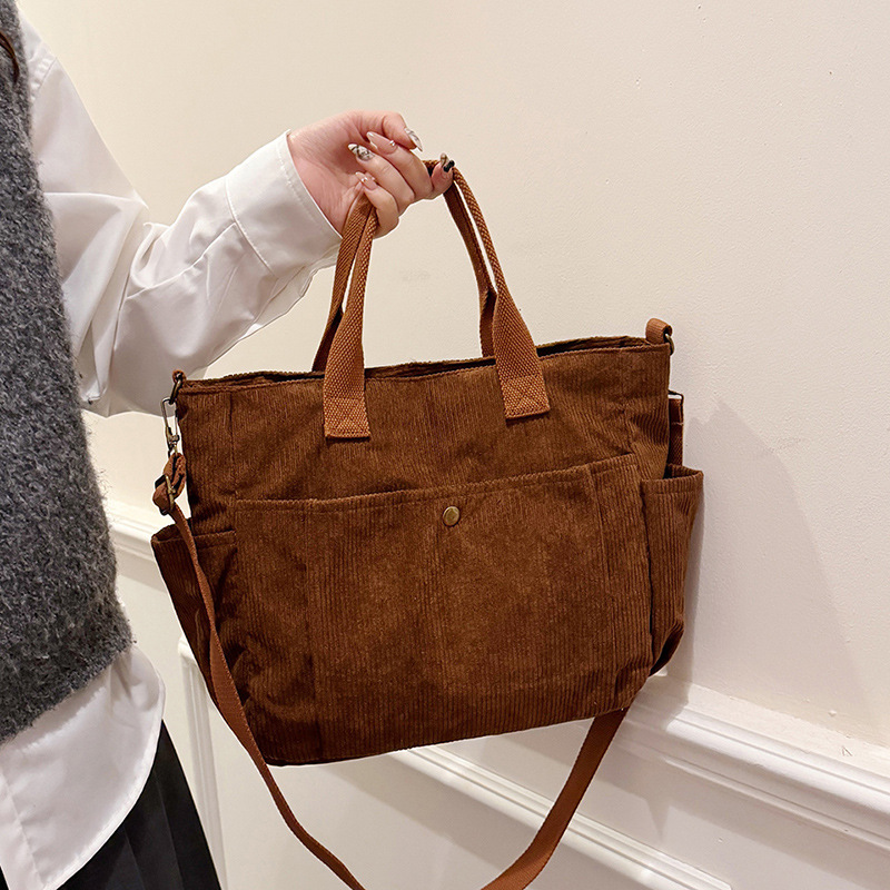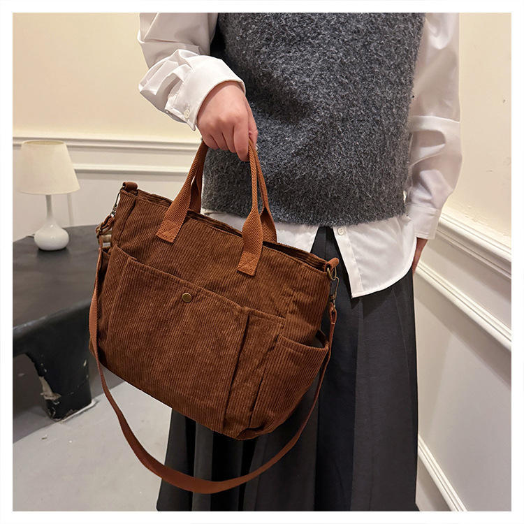New Women's Corduroy Bag Casual Handbag Shoulder Crossbody Bag Large Capacity Multi-Pocket Women's Tote Bag