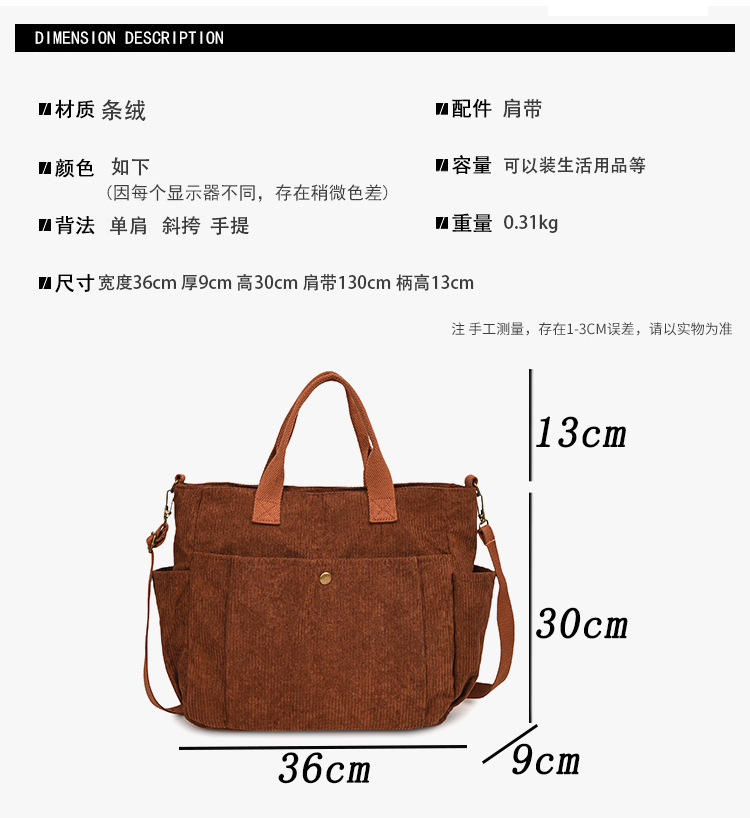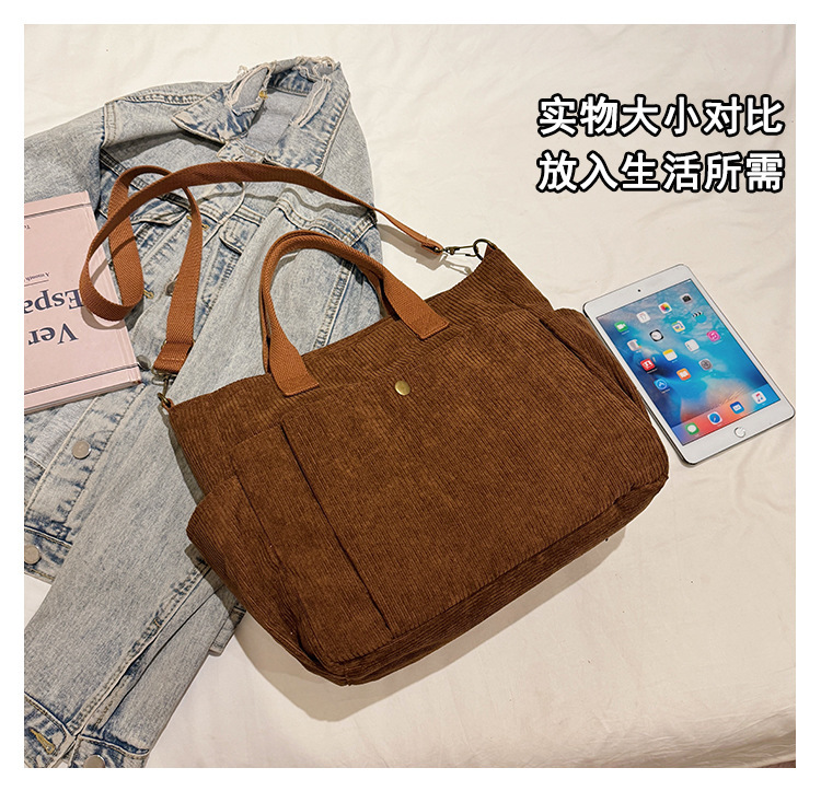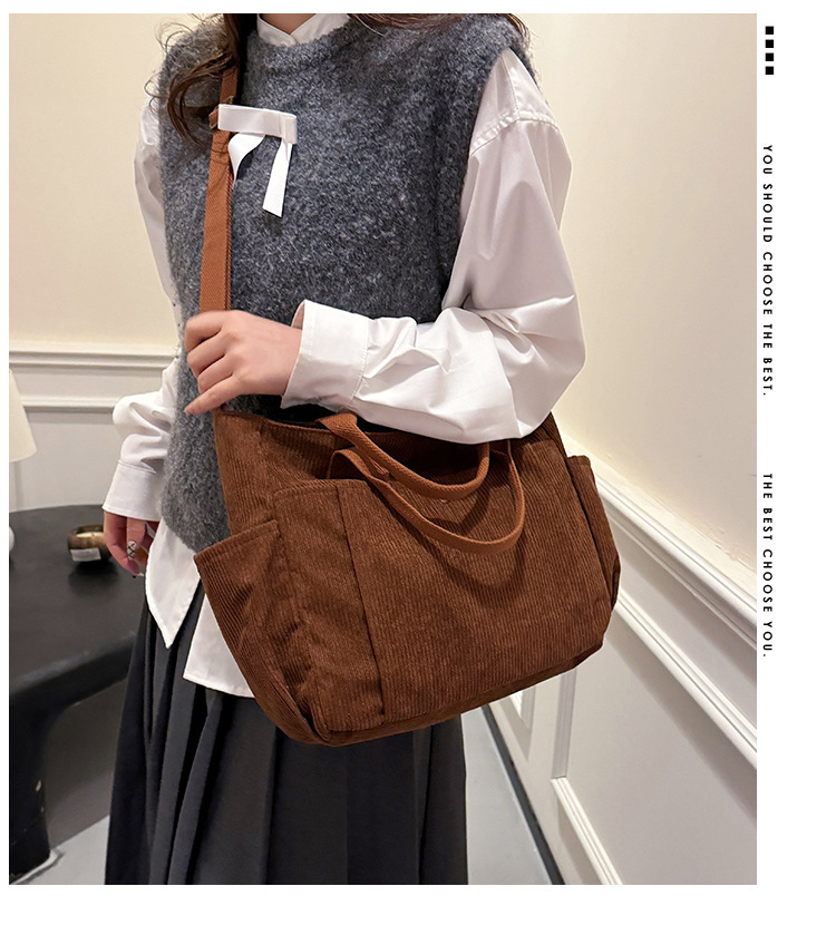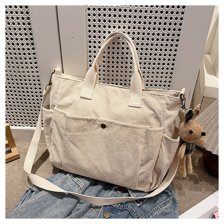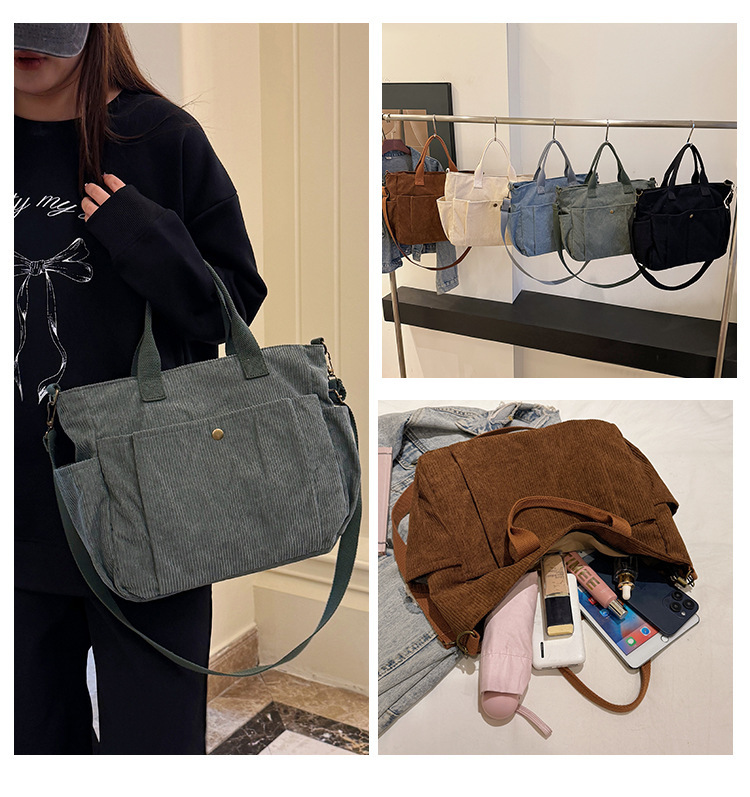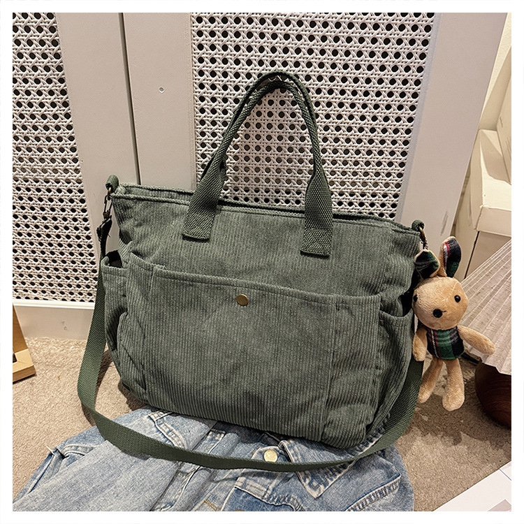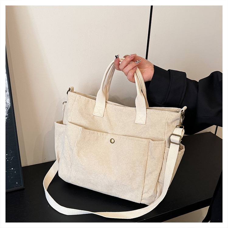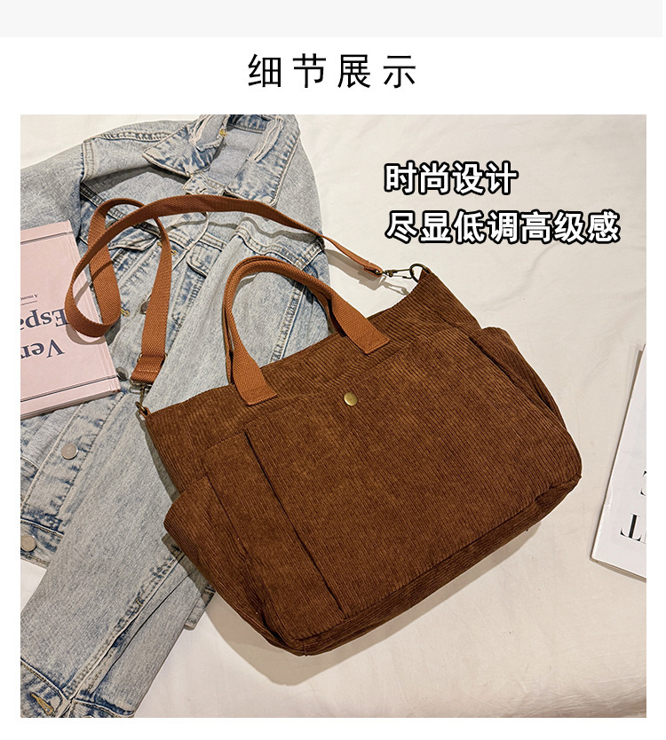 New Women's Corduroy Bag Casual Handbag Shoulder Crossbody Bag Large Capacity Multi-Pocket Women's Tote Bag