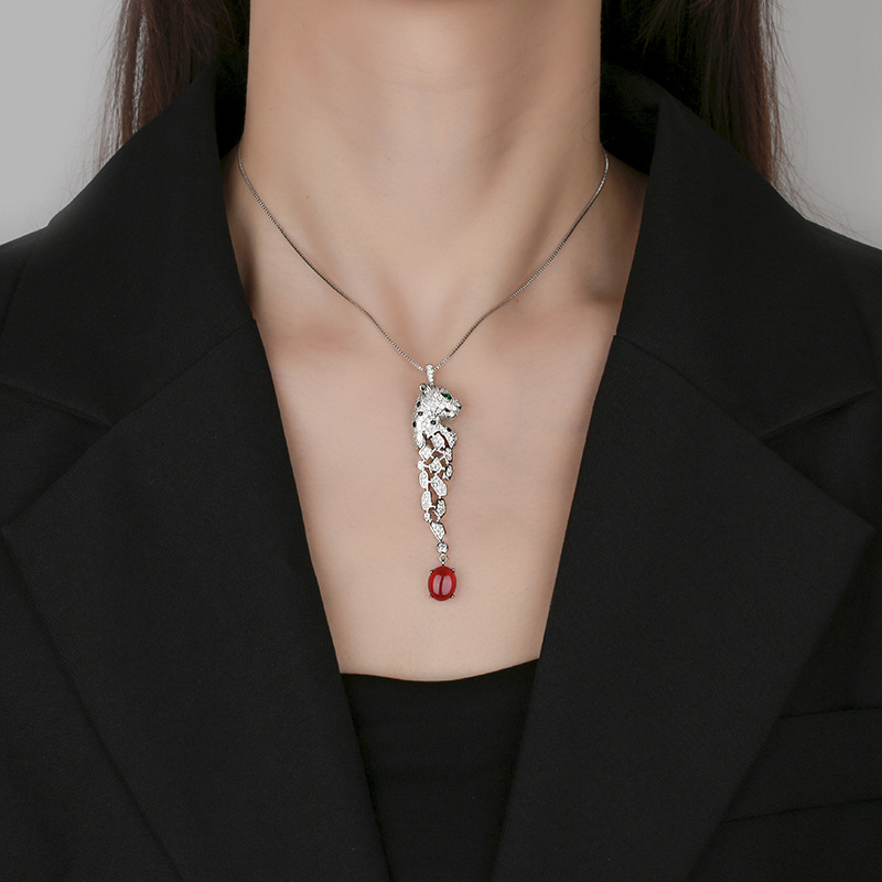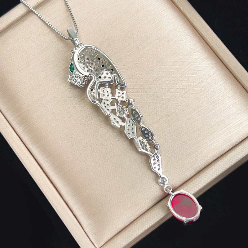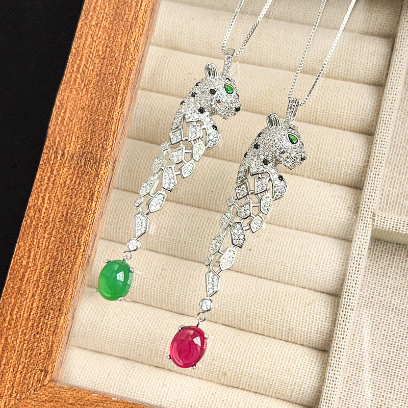 2024 new Zhuang Shengsheng jewelry simulation red corundum green chalcedony plain vintage leopard pendant main stone 8*10