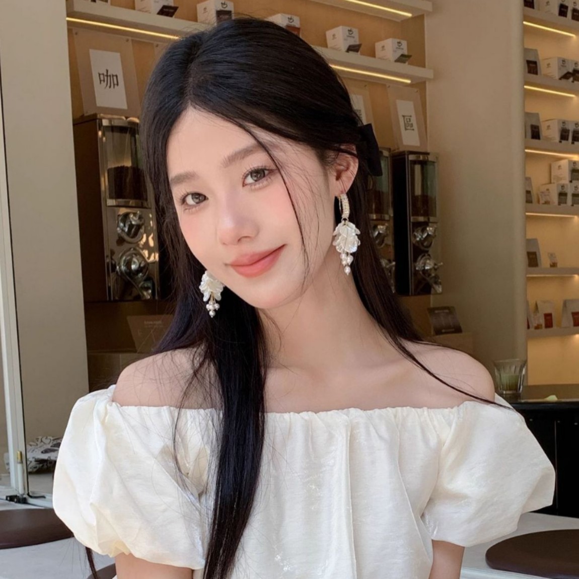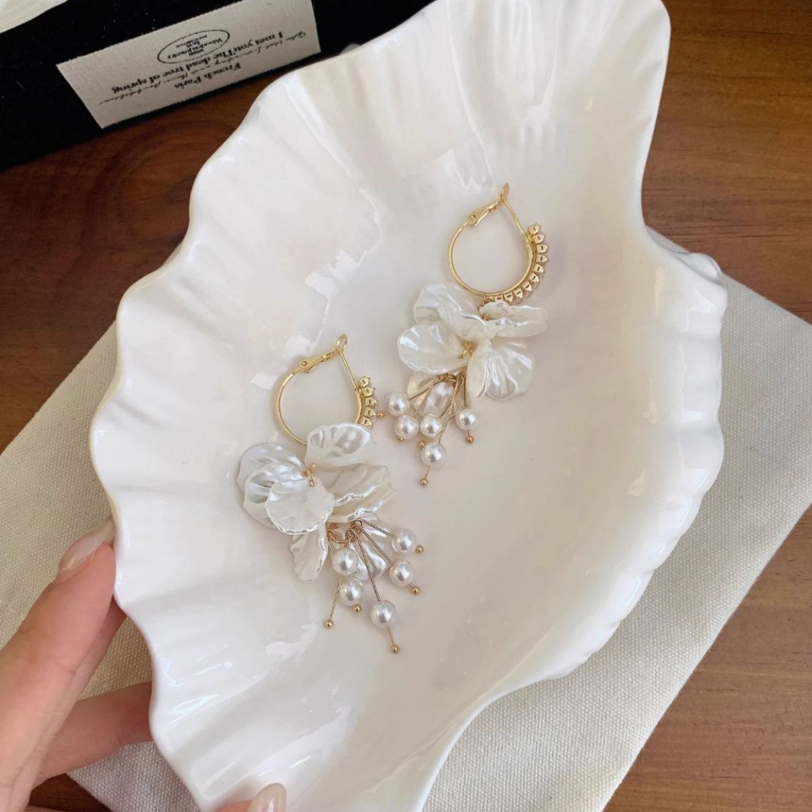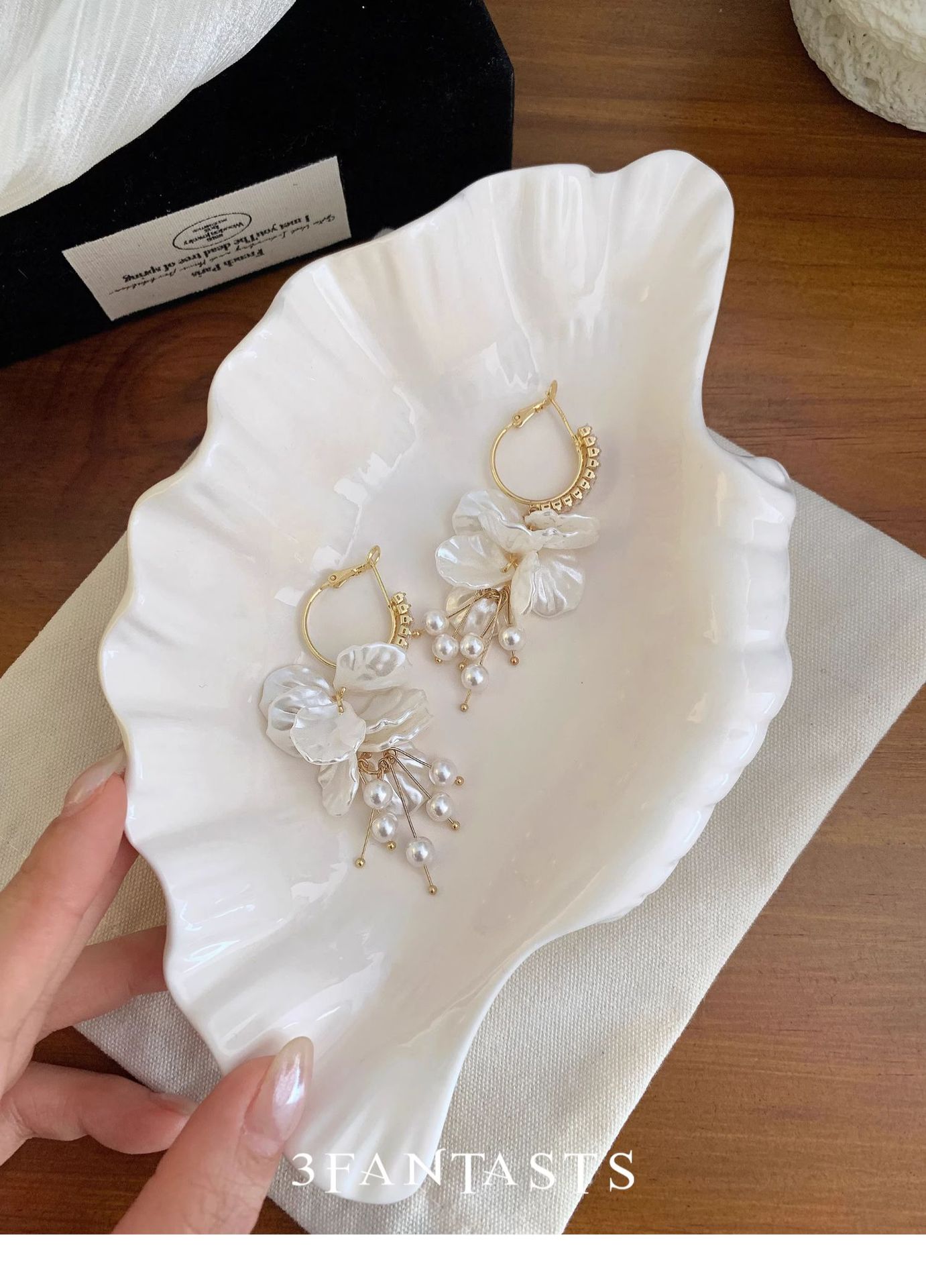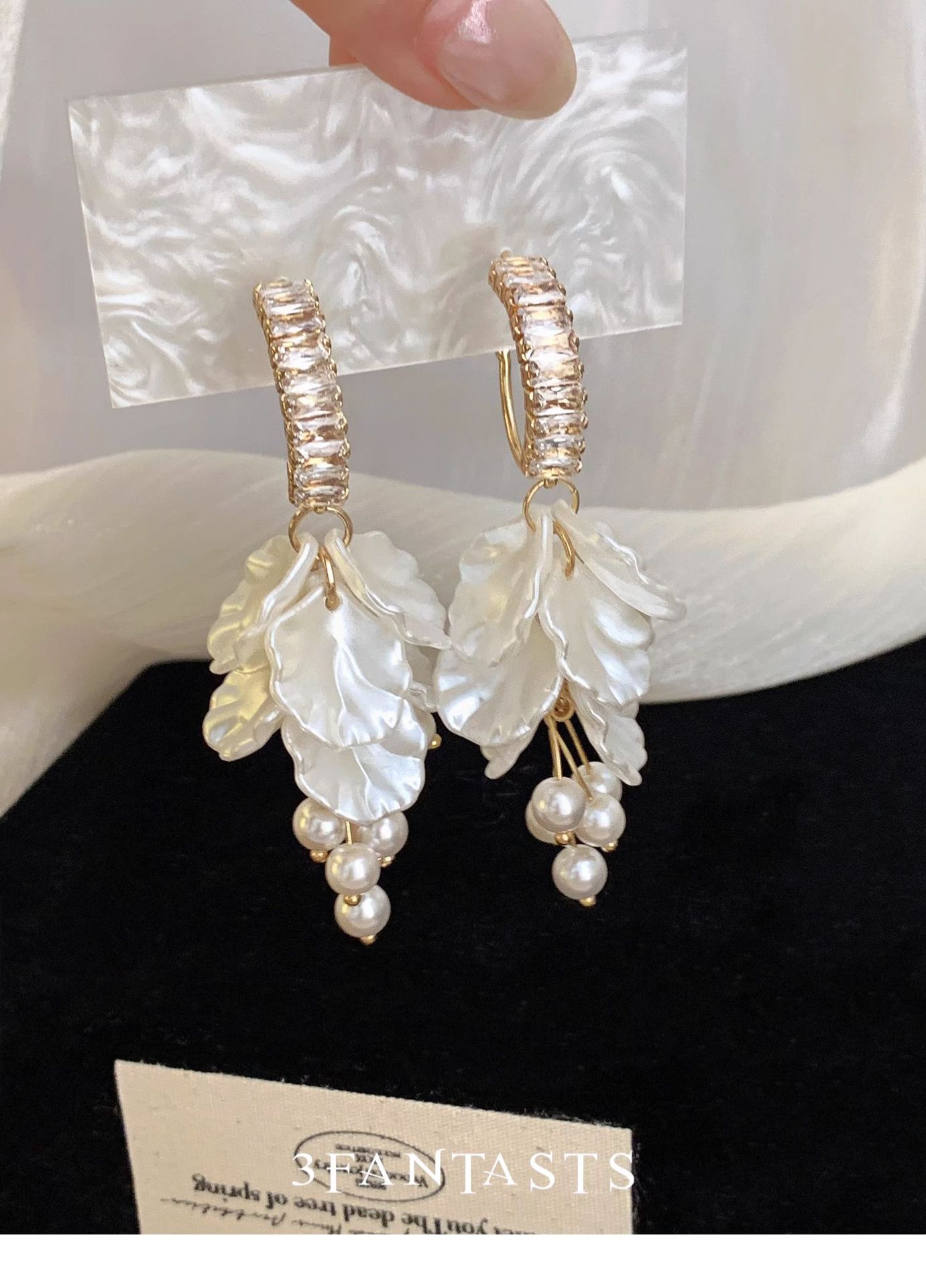 Color: Petal pearl tassel earrings