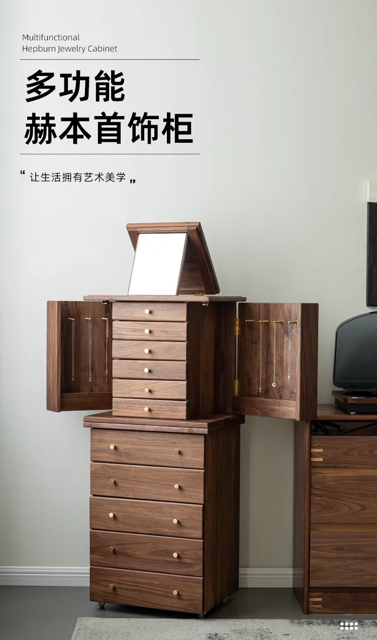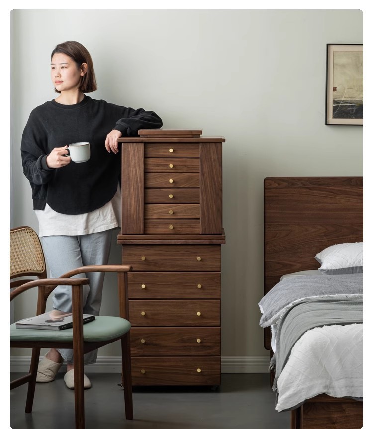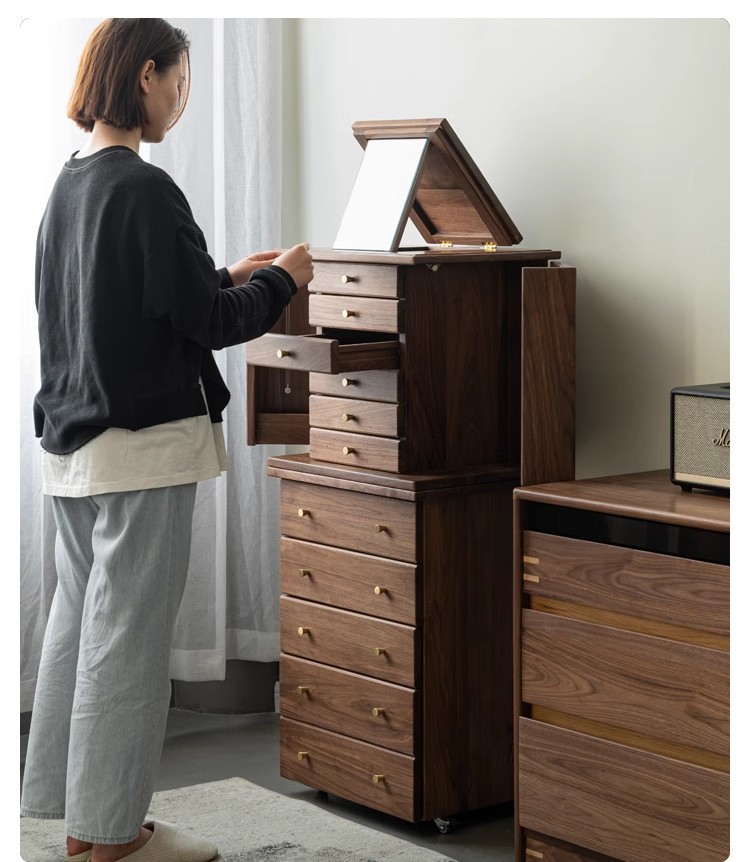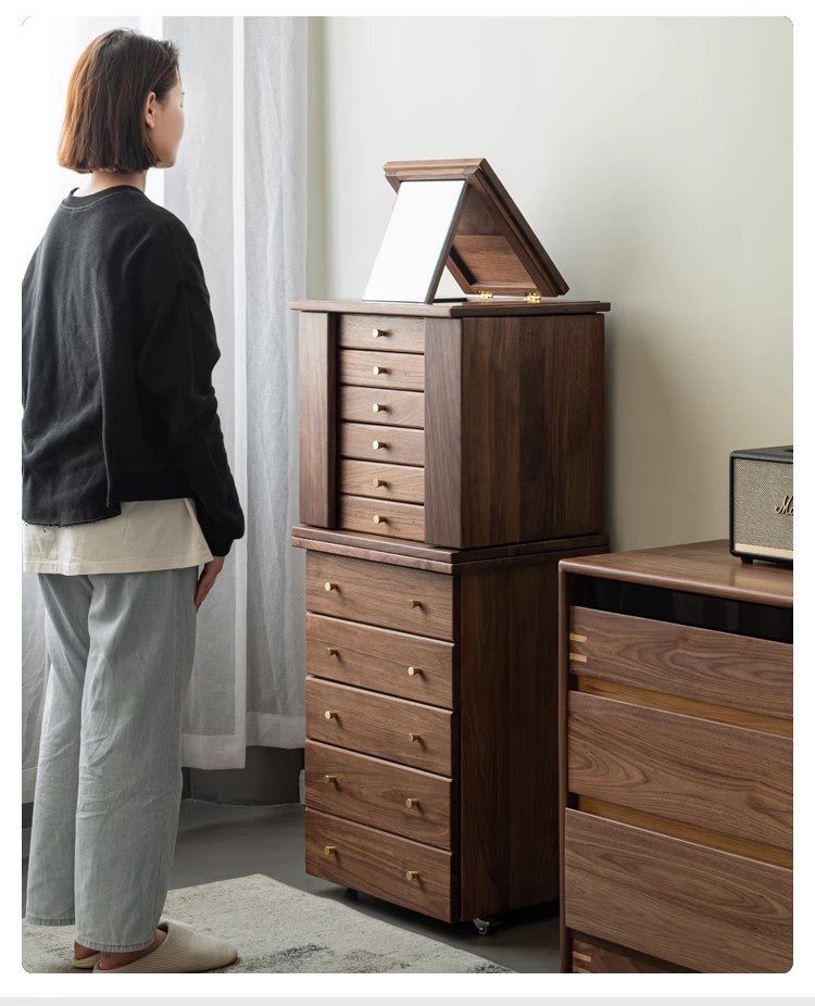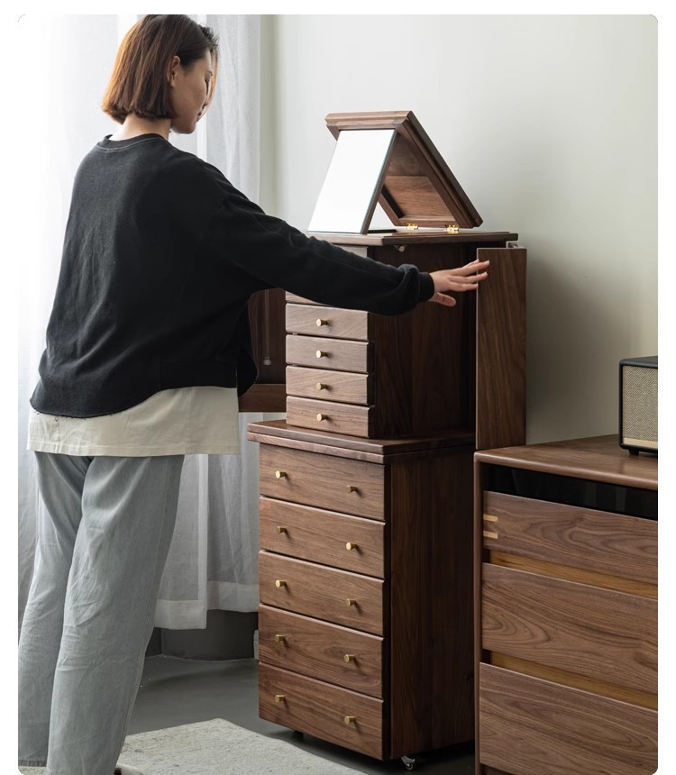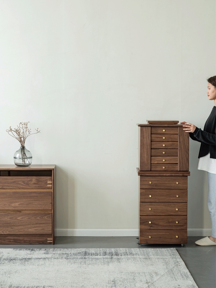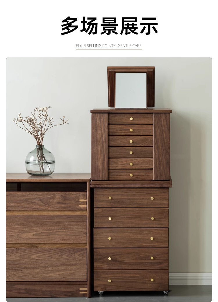 North American Black Walnut Multi-function Chipper Jewelry Box Nordic Solid Wood Cherry Wooden Dresser Cabinet Bedroom Bedside Cabinet