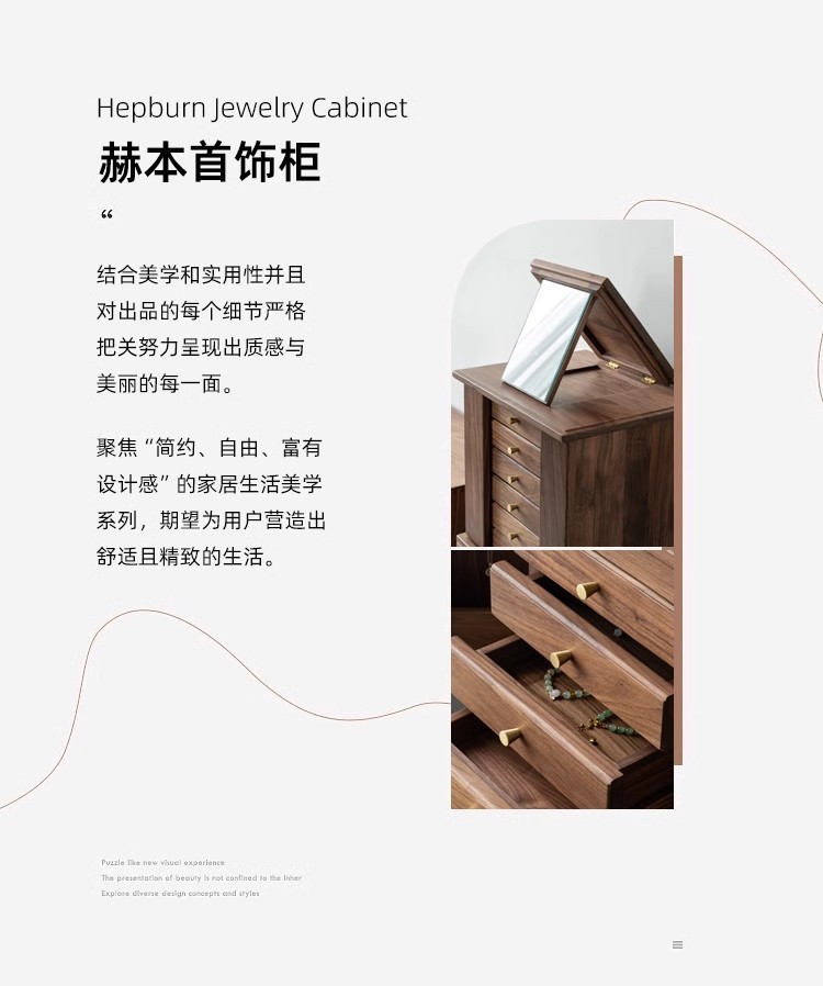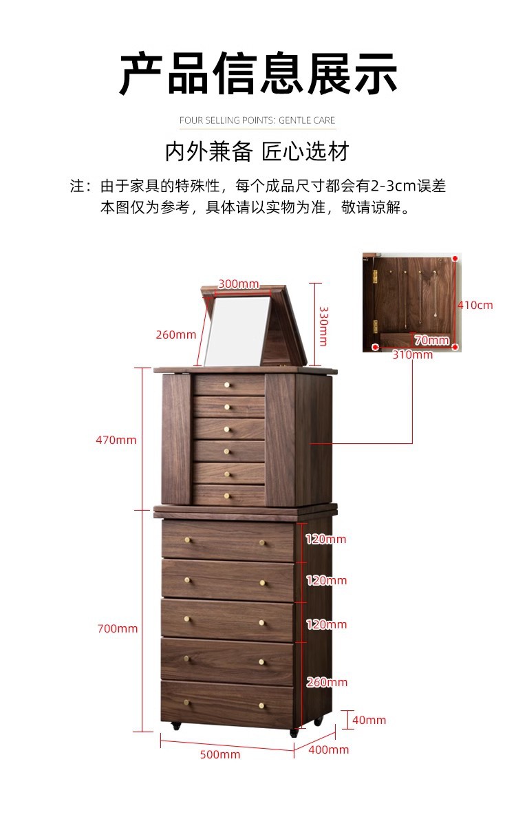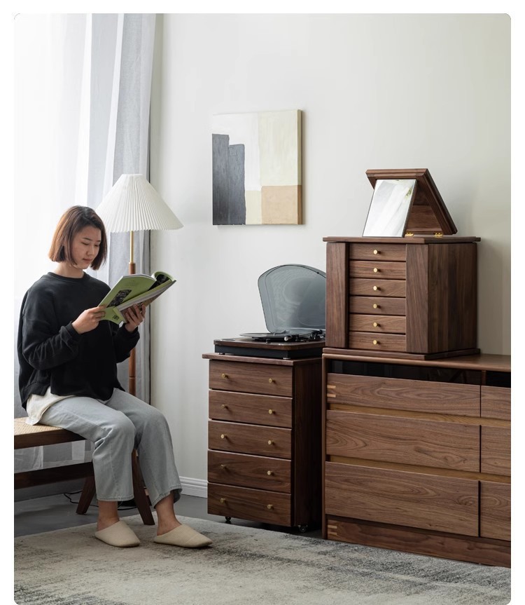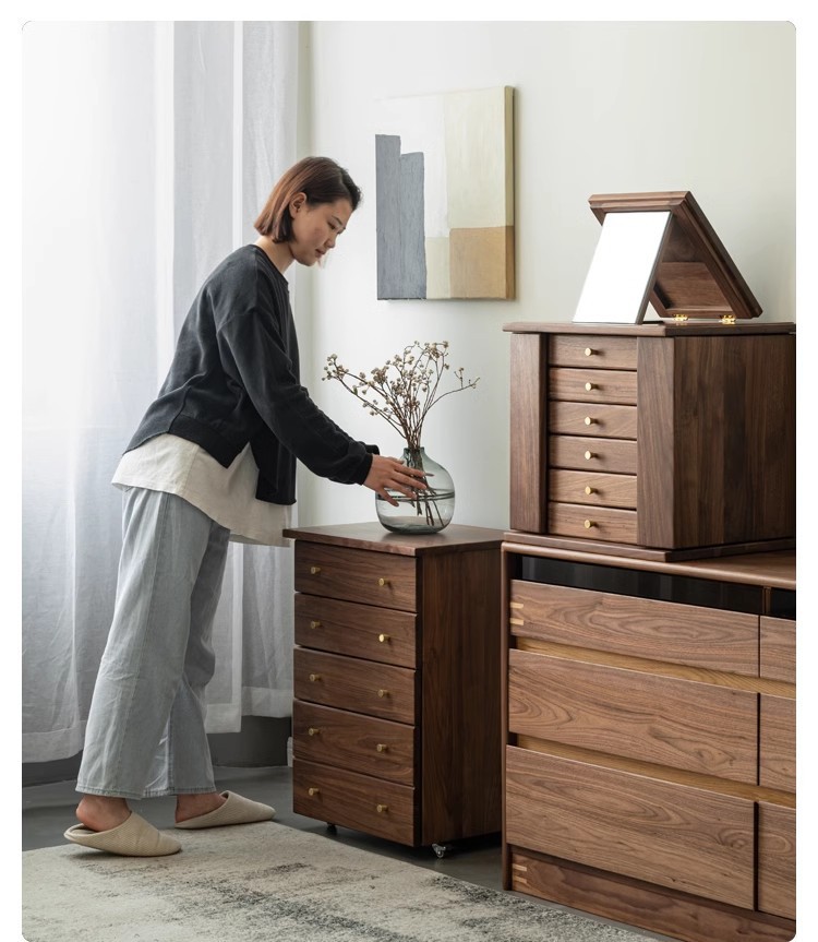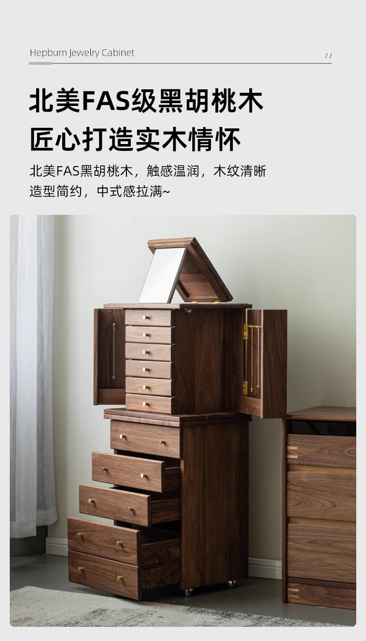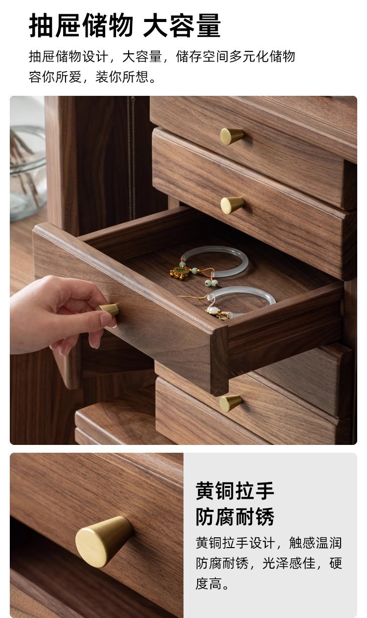 North American Black Walnut Multi-function Chipper Jewelry Box Nordic Solid Wood Cherry Wooden Dresser Cabinet Bedroom Bedside Cabinet
