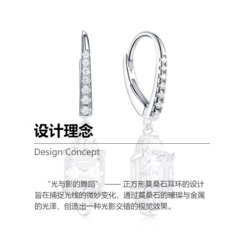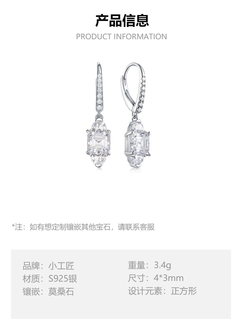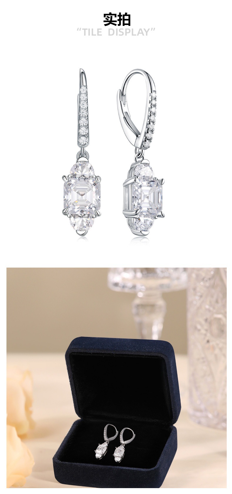 Cross-border hot sale new twenty -925 sterling silver ladies earrings square cut moissanite bright earrings