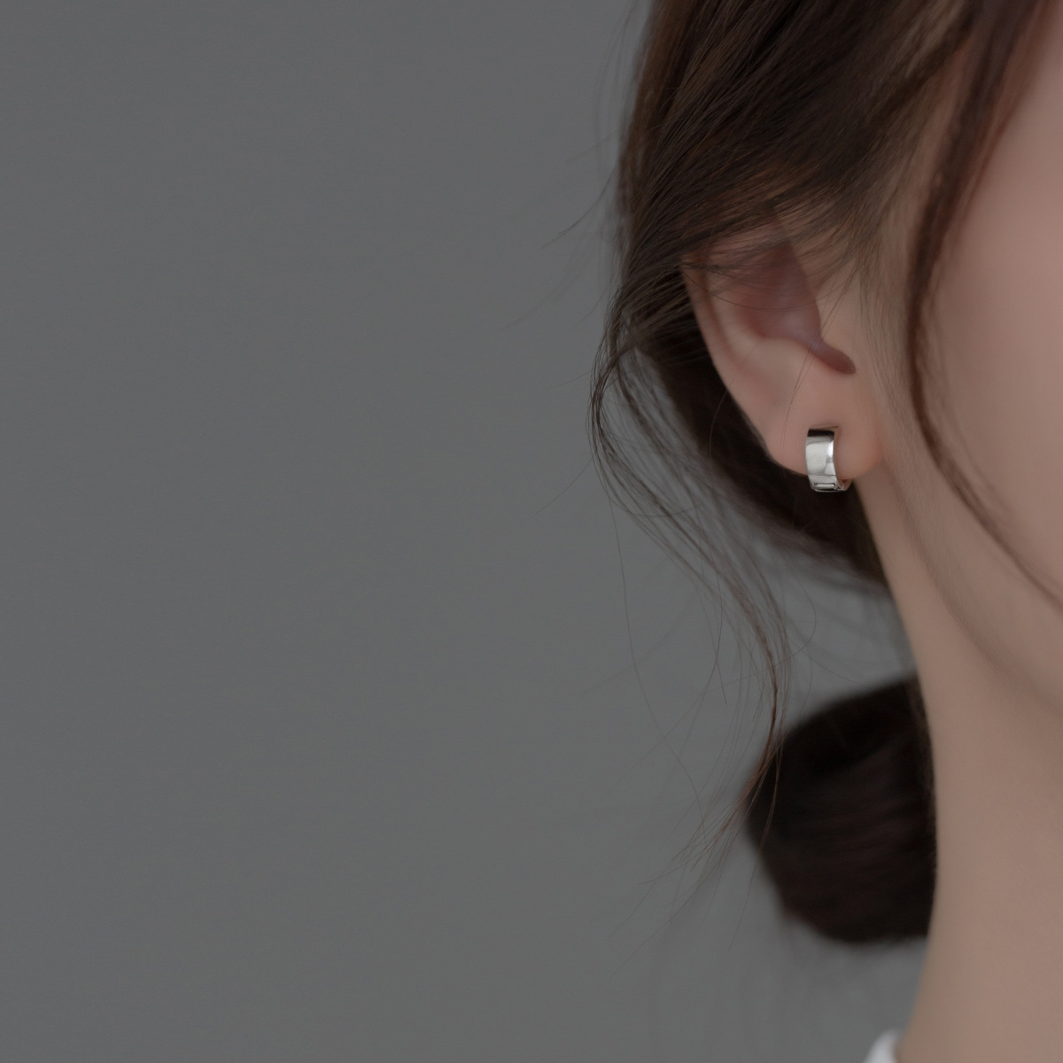 Ailoqi s925 silver Korean simple wide round ear buckle small temperament men's and women's ear jewelry M02645