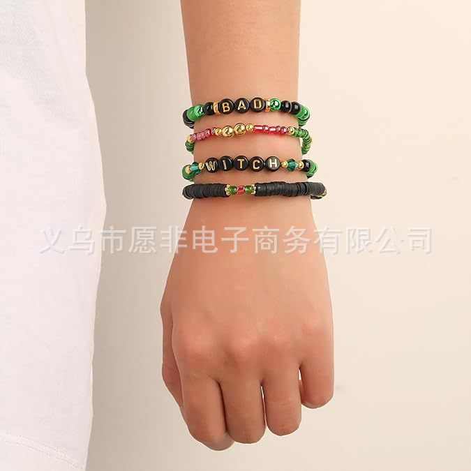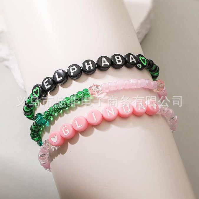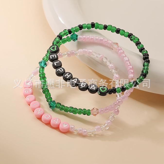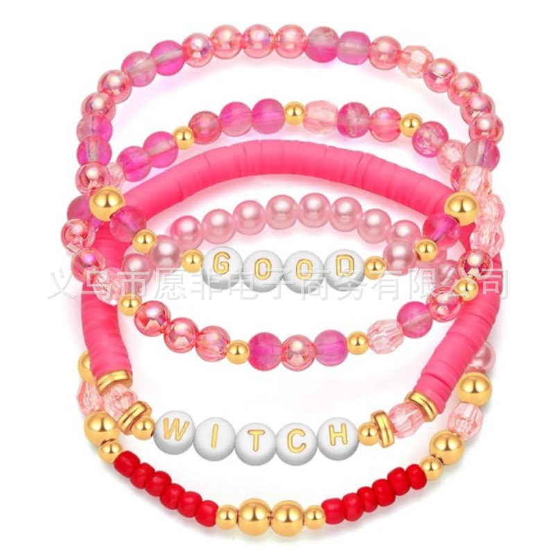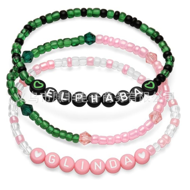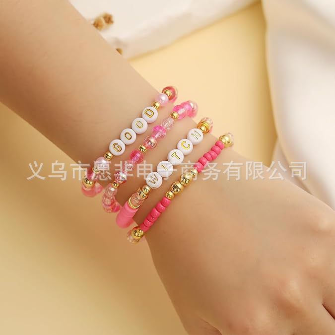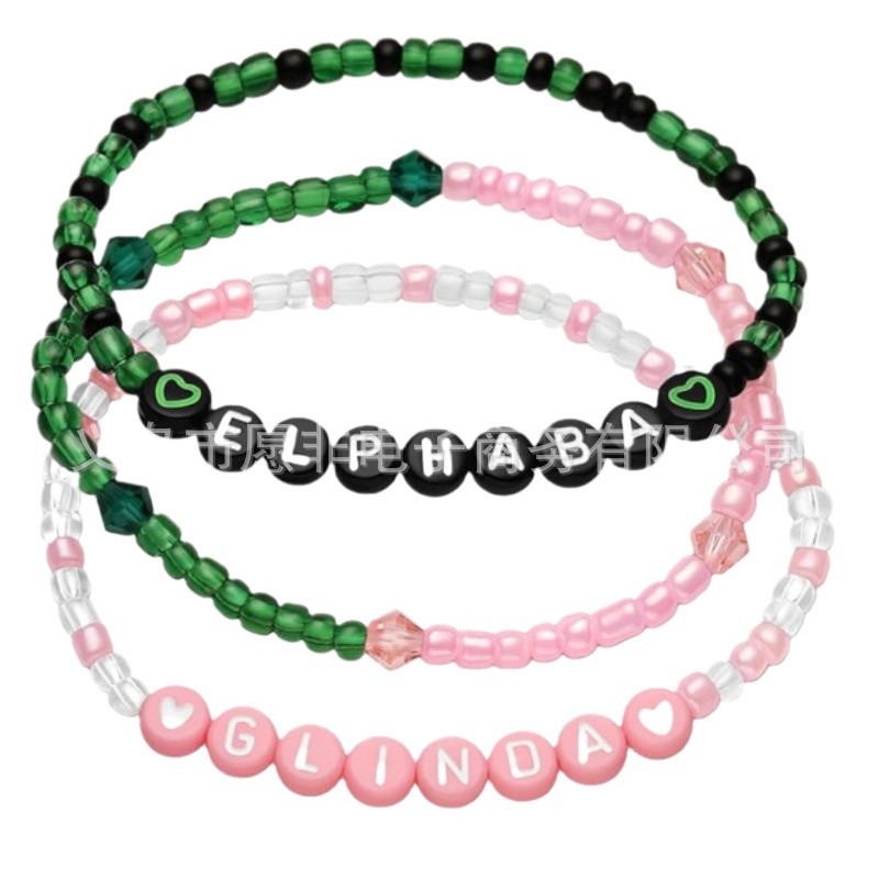 Cross-border Hot Green Pink Glass Beads Women's Beaded Elastic Letter Bracelet Fashion Simple Personalized Bracelet
