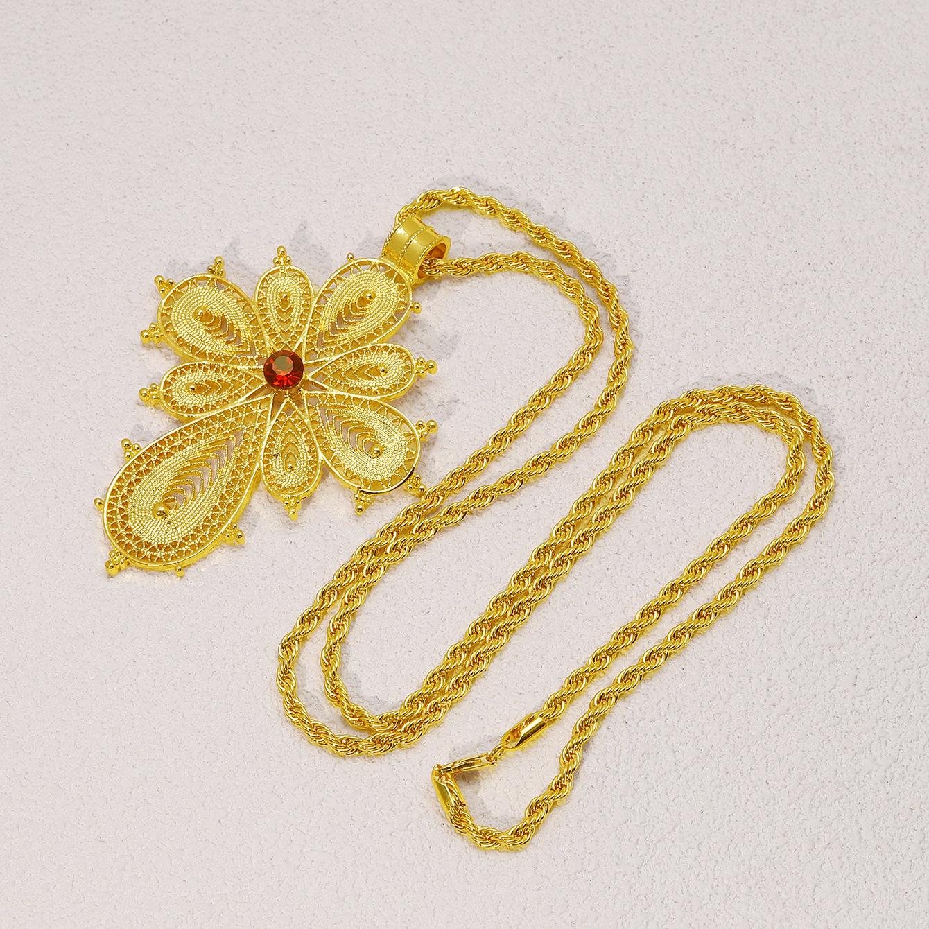 Cross-border Middle East Plated 24K Gold Cross Hollow Necklace Pendant suit Dubai European and American Bride Wedding Jewelry