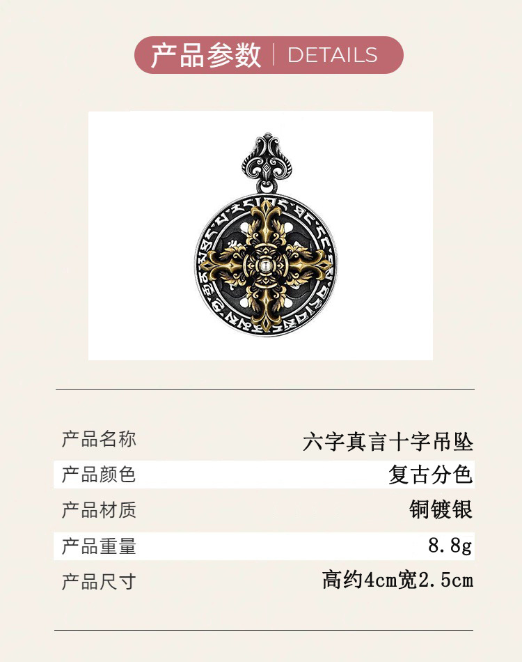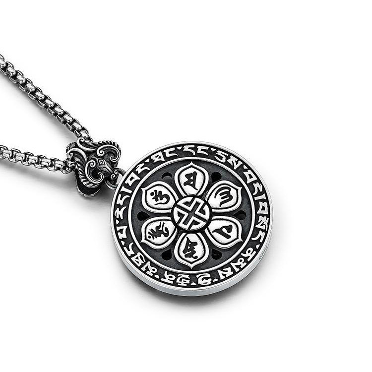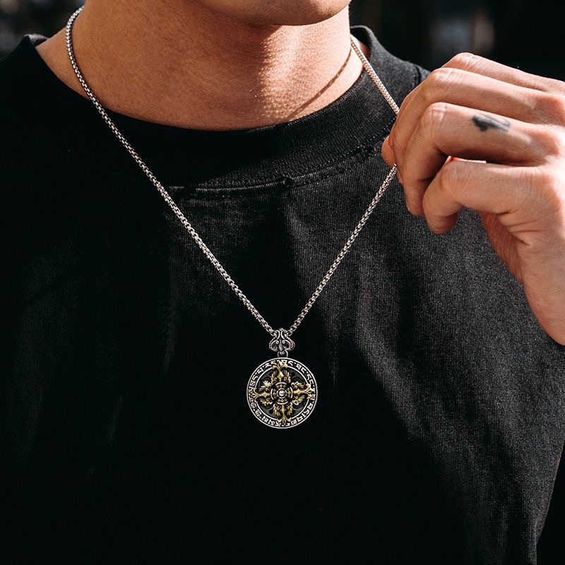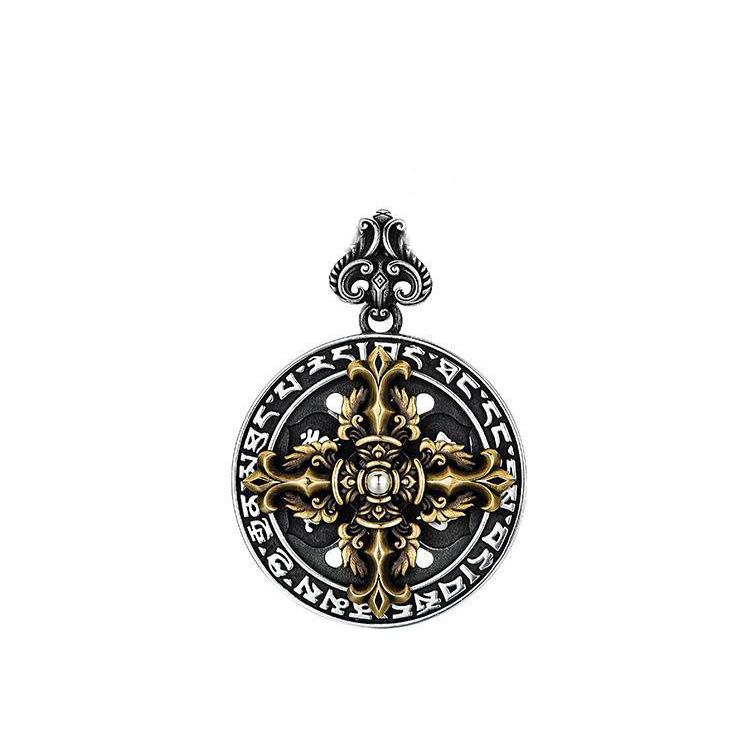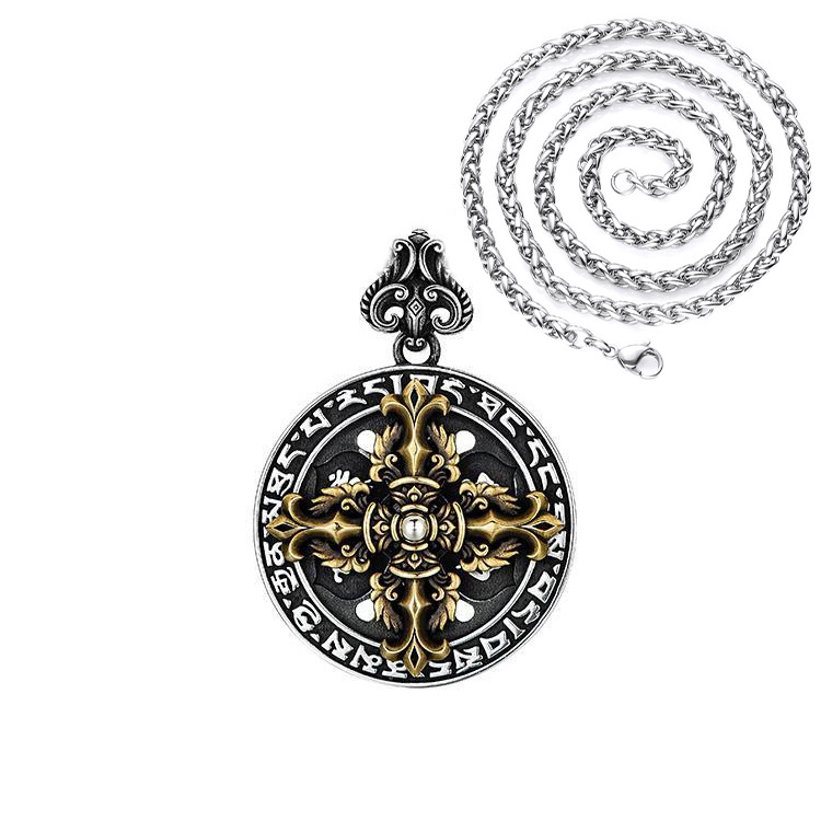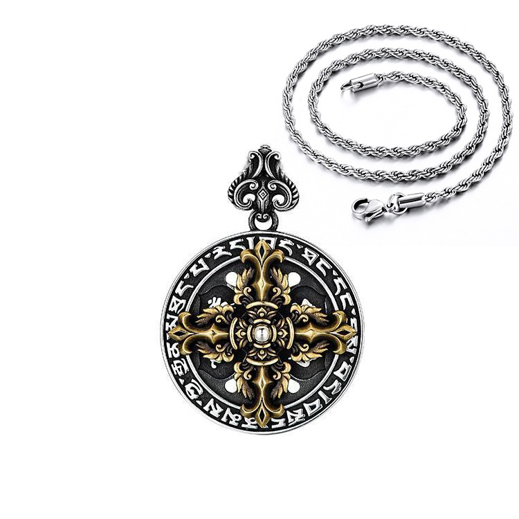 Europe and the United States cross-border hot new retro six-character mantra cross diamond pestle ring fashion simple necklace men's hanging