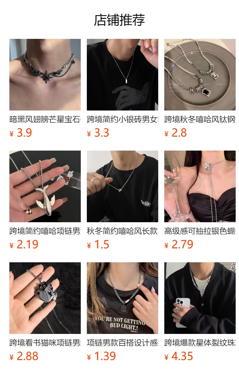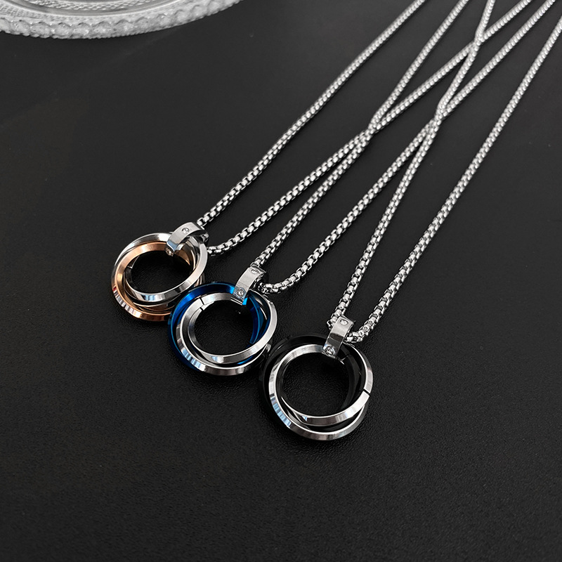 Color: Black three ring necklace "full body titanium steel" 70cm