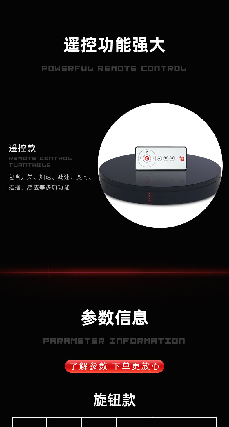 Package list: Knob model: turntable + charging cable + manual remote control model: turntable + charging cable + remote control + manual
