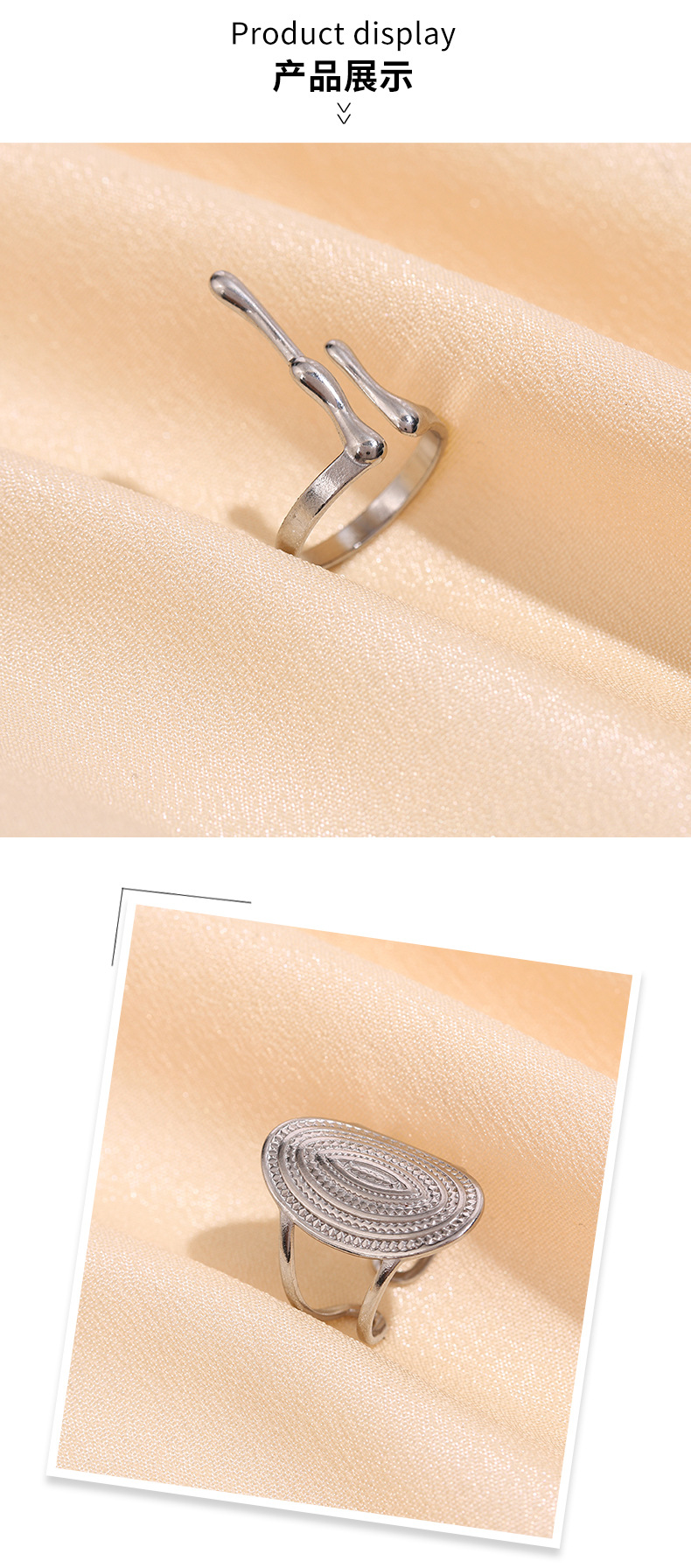 Cross-border Hot Sale Titanium Steel Ring Geometric Fashion Simple Hydraulic Open Ring All-match Personalized Couple Ring