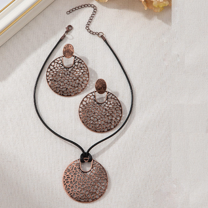 European and American Cross-border Geometric Retro Round Earring Necklace suit Antique Bronze Fashion