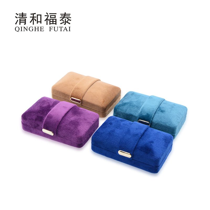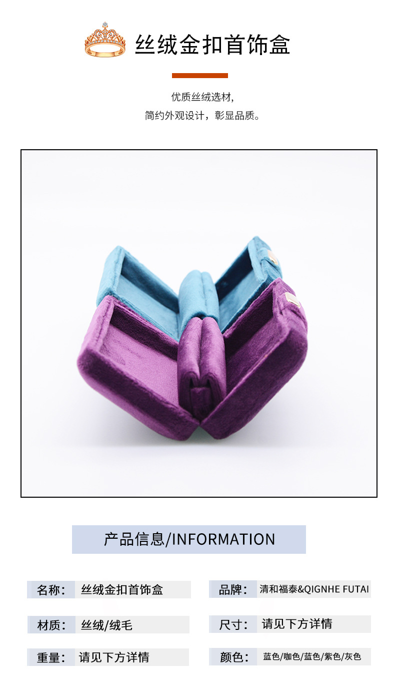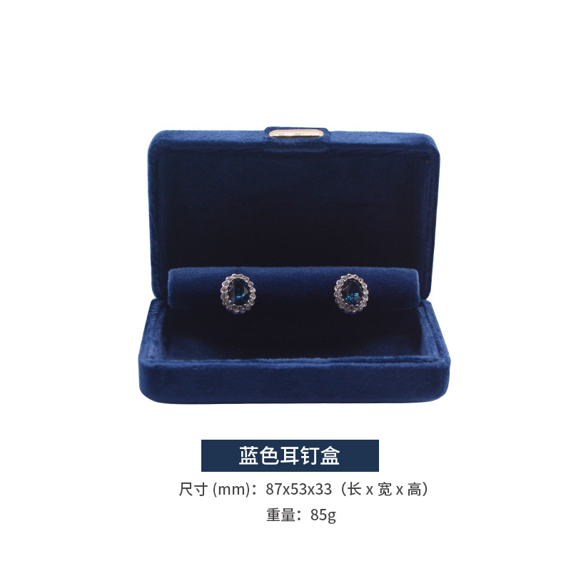 Specifications and models: Blue earring box; velvet gold buckle jewelry box