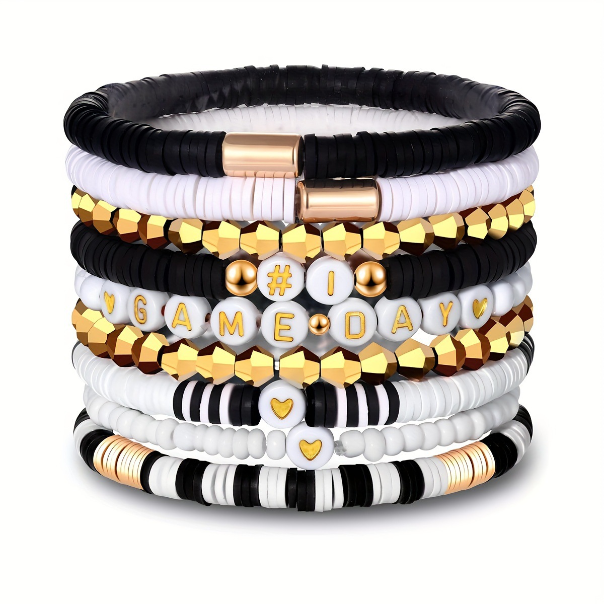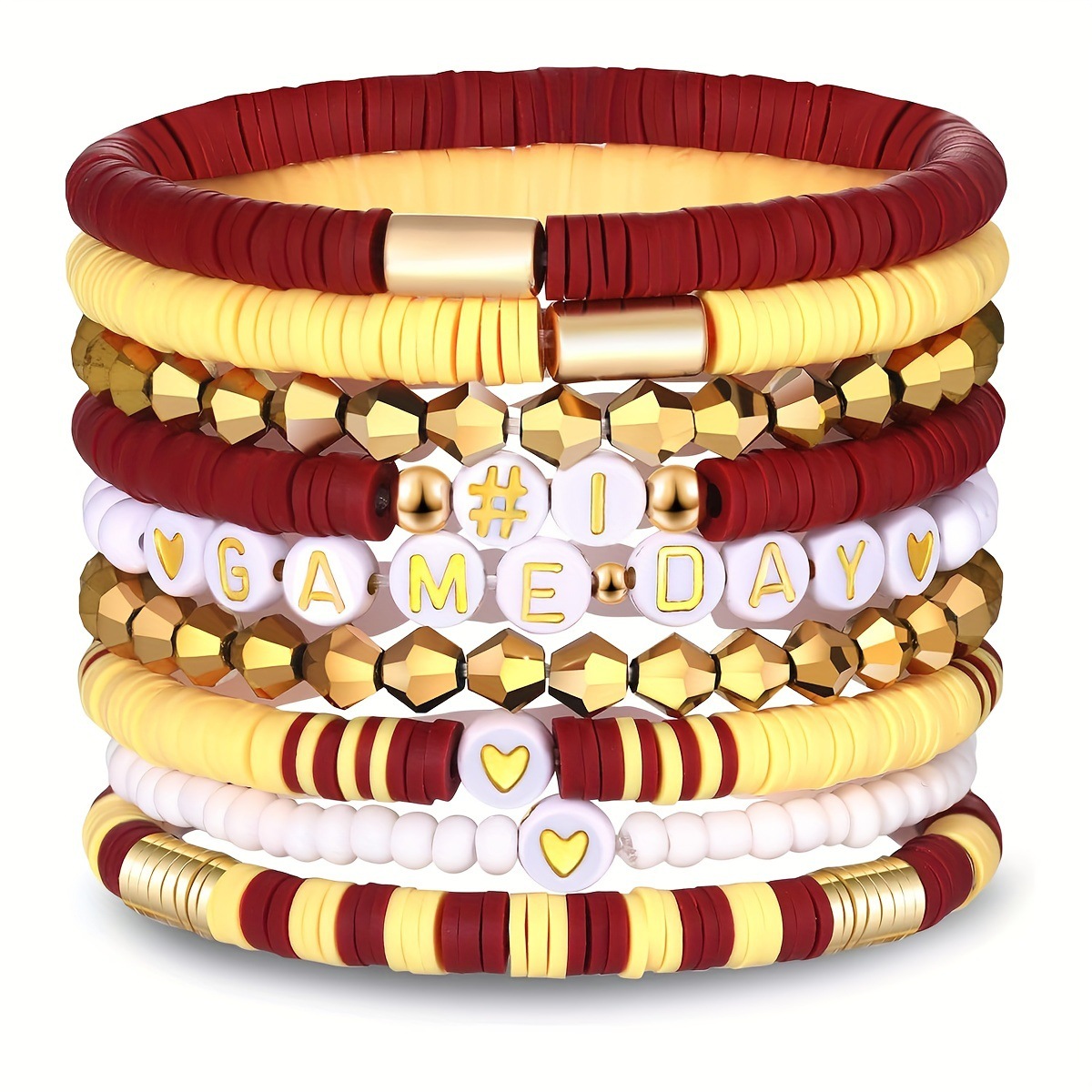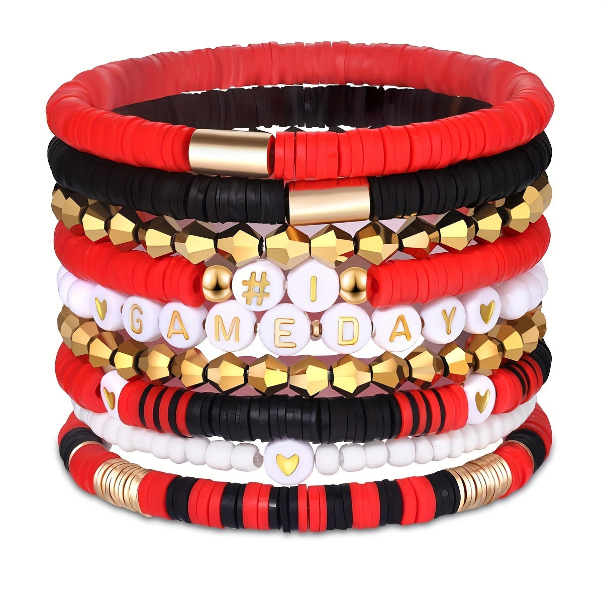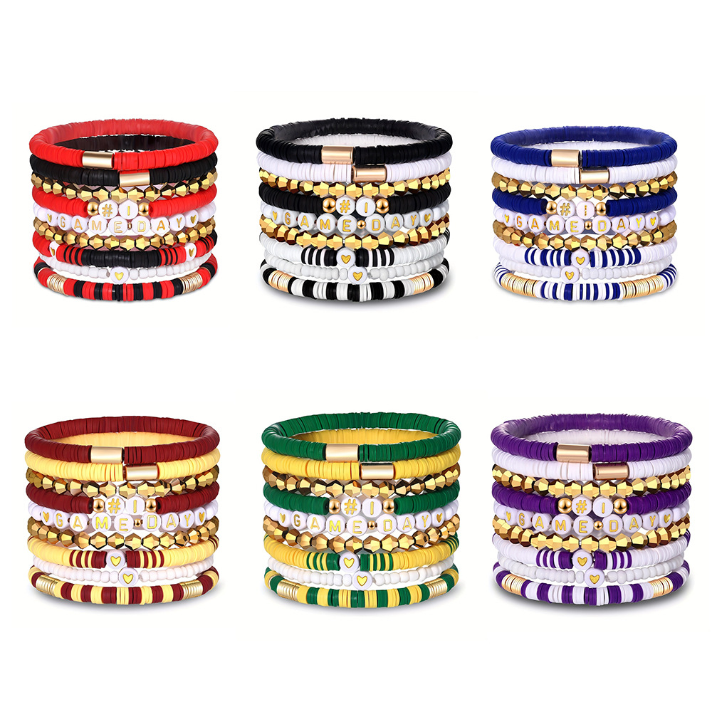 Cross-border Hot Super Bowl Rugby Bracelet suit Game Day Soft Ceramic Bracelet Multi-layer Stacked Wear Soft Ceramic Bracelet