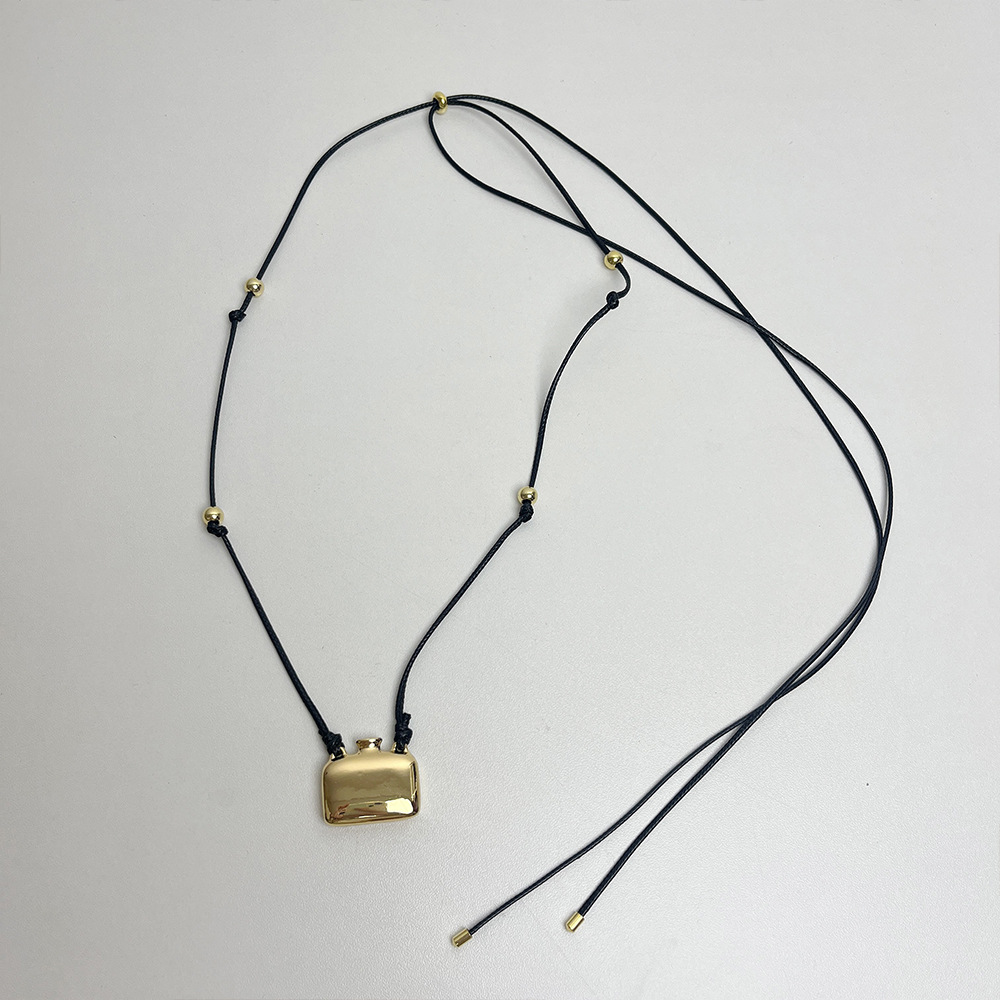 South Korea blogger with square perfume bottle long necklace women's simple niche design drawable black rope sweater chain
