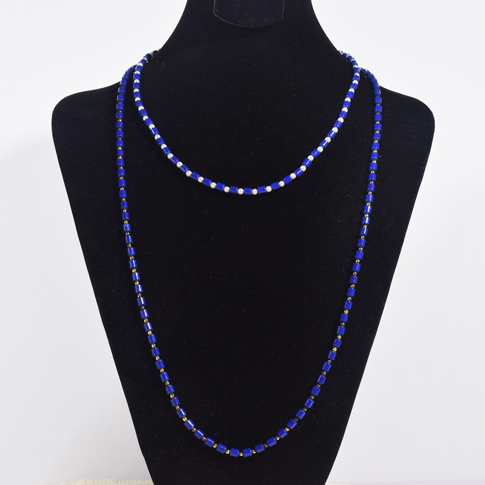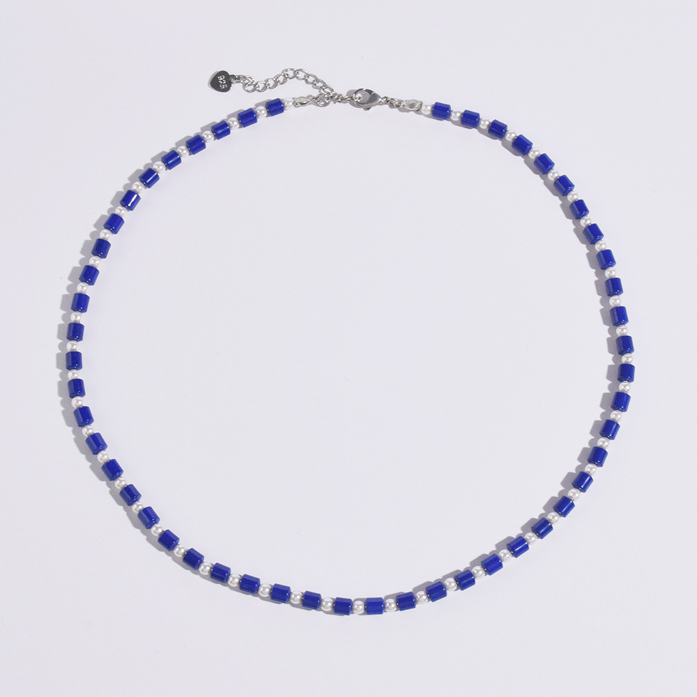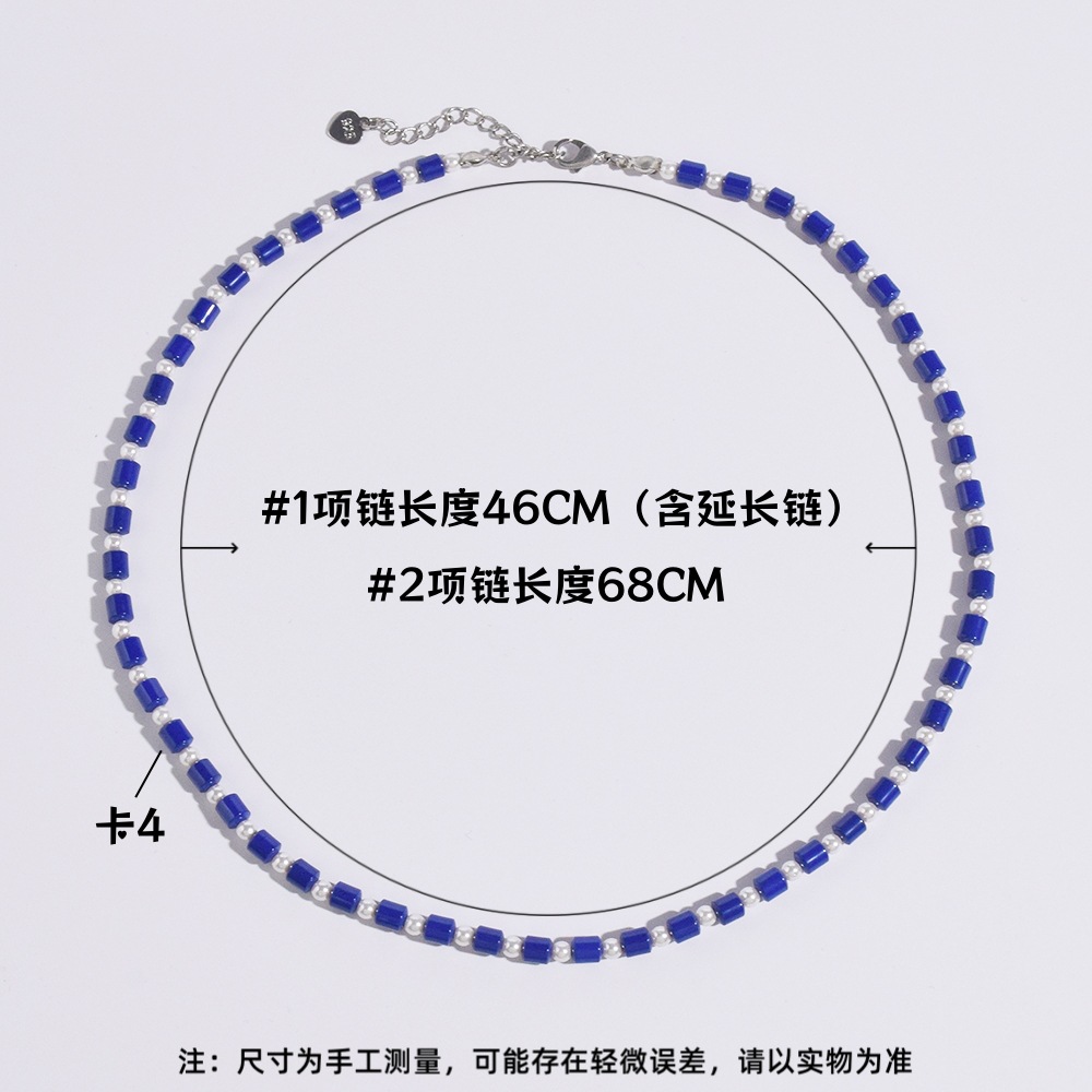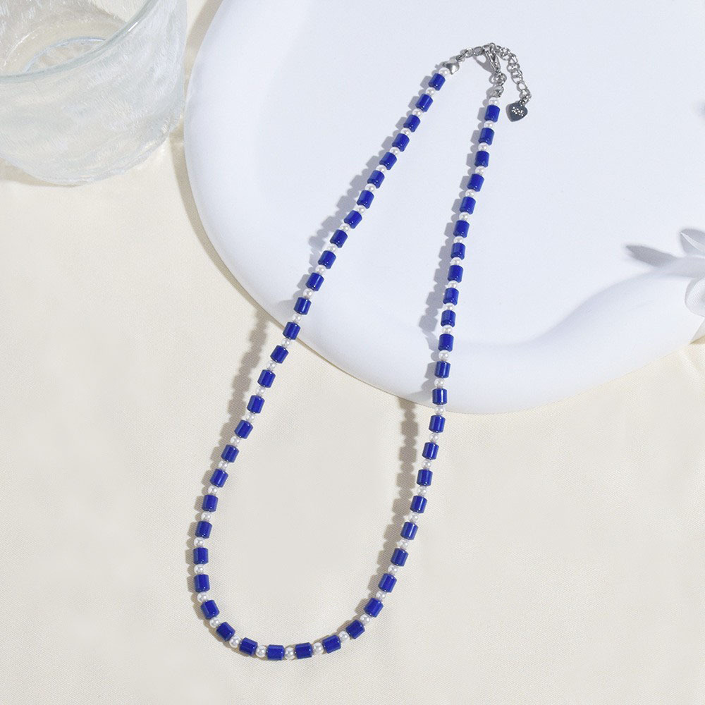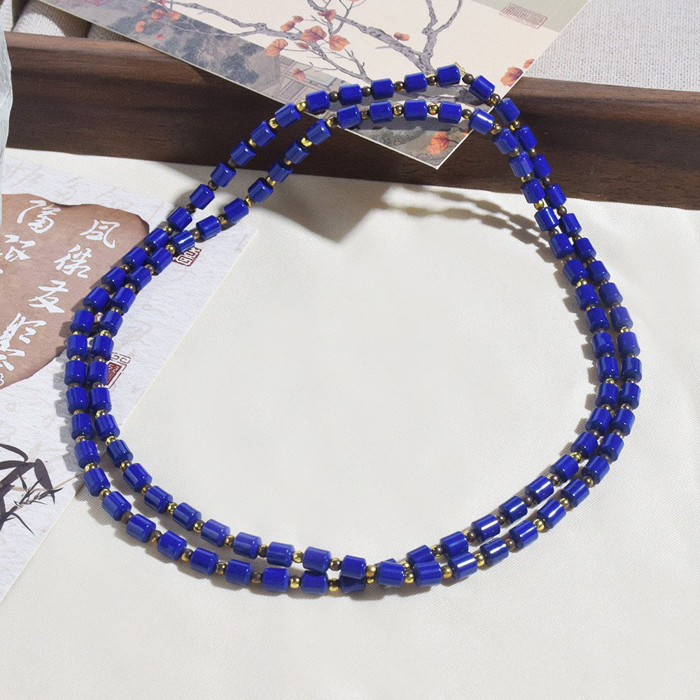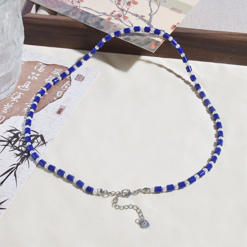 Pearl Necklace Niche All-Match High-Level Clavicle Chain Women's Vintage Blue Ore Lapis Lapis Lauvistone Necklace Woolen Chain Women's Products