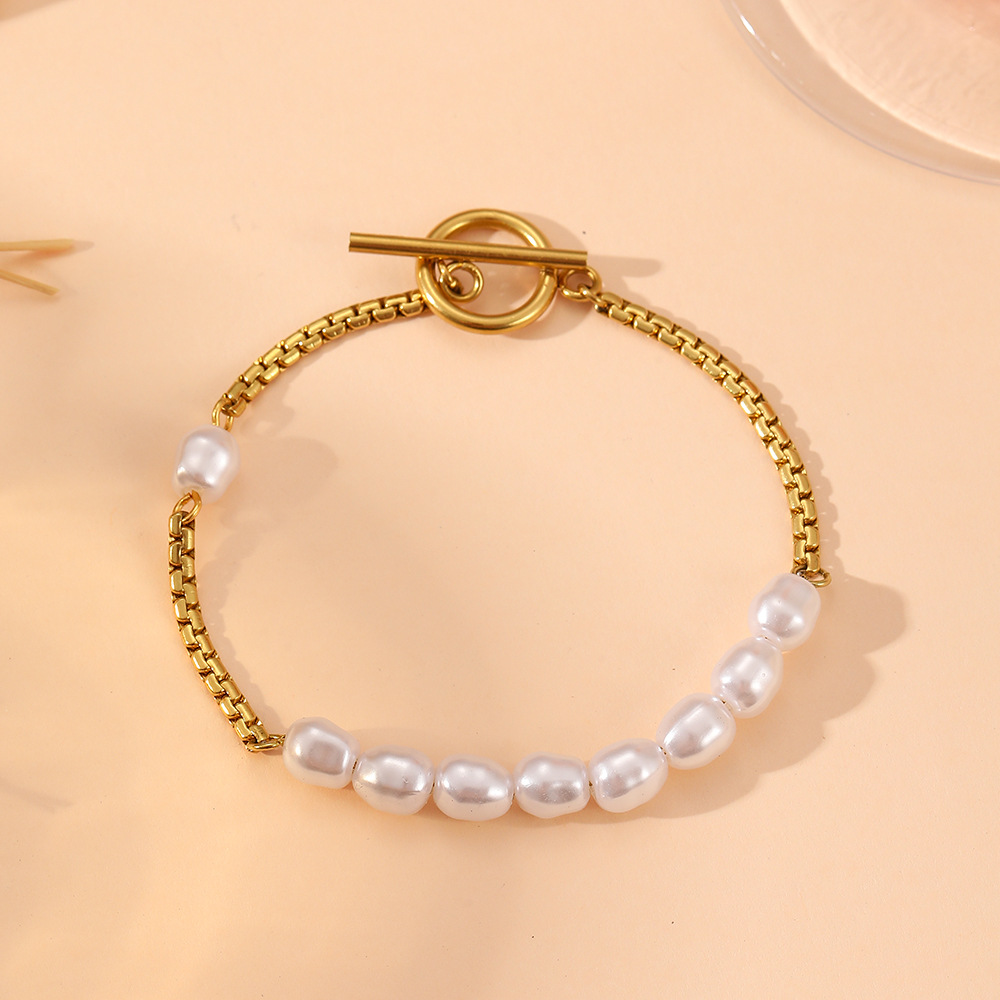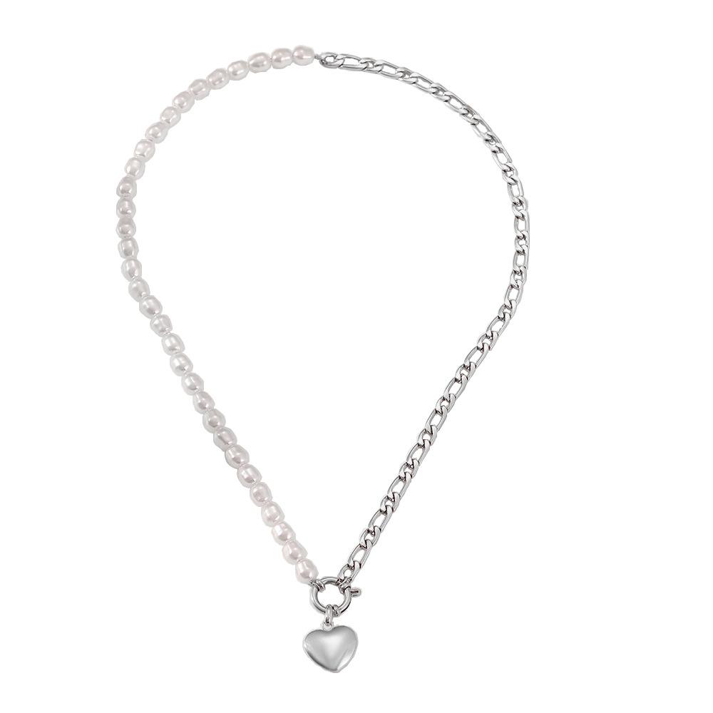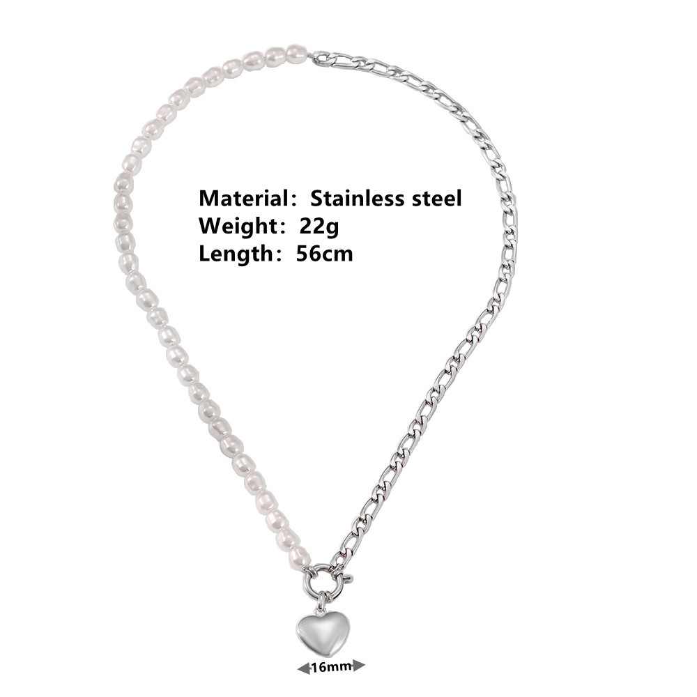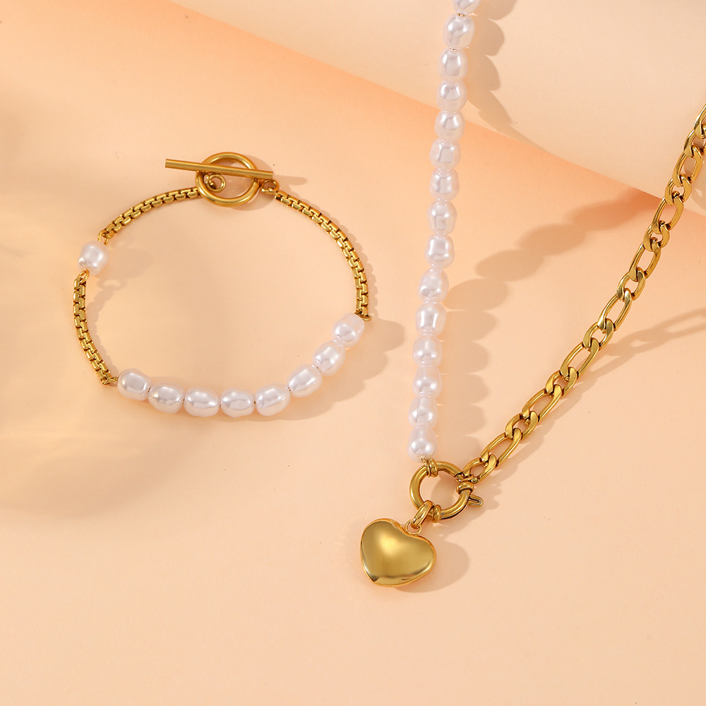 Cross-border Winter Stainless Steel Necklace Bracelet European and American Trend Titanium Steel Color Preservation Pearl Love Necklace Bracelet suit