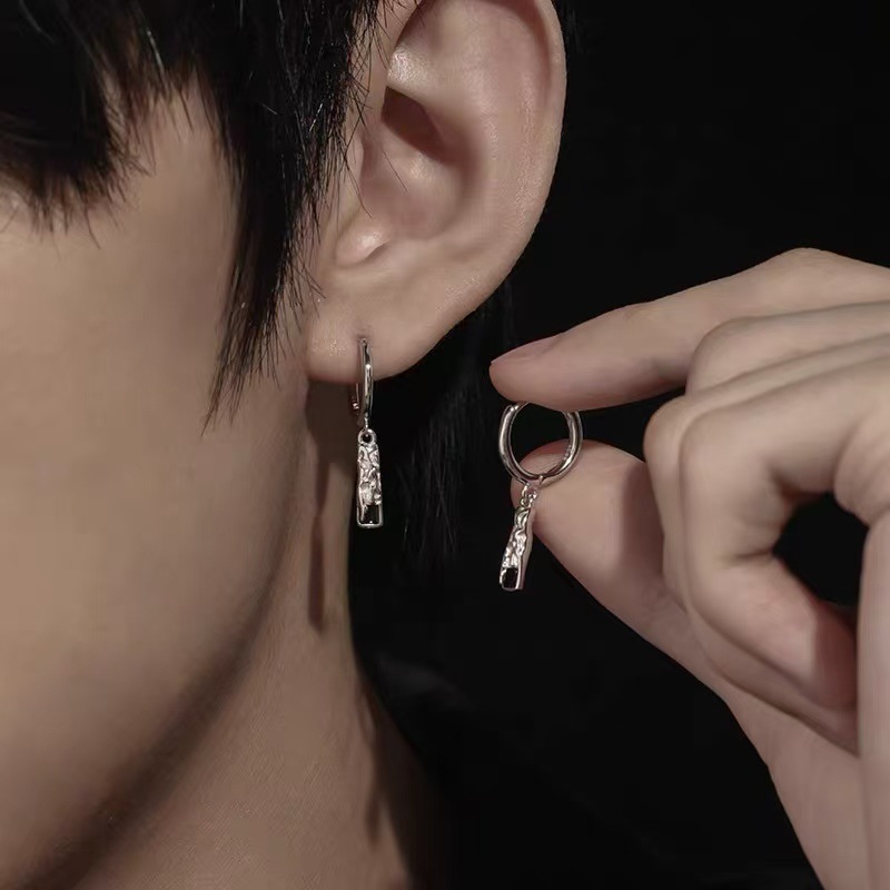 Star-stripe earrings men's light luxury niche design high-grade sense ruffian handsome earrings black zircon high-grade unique earrings earrings