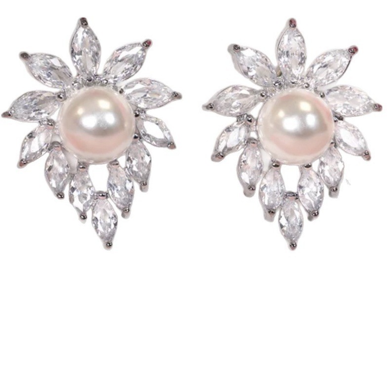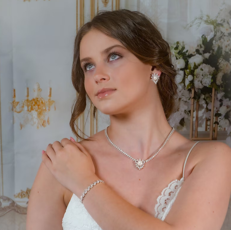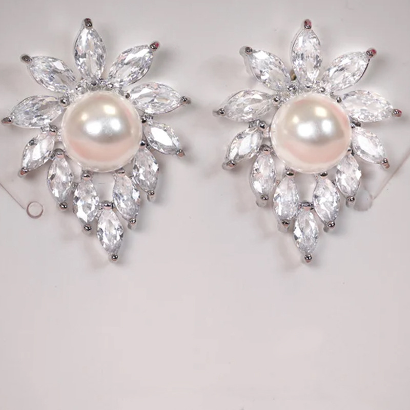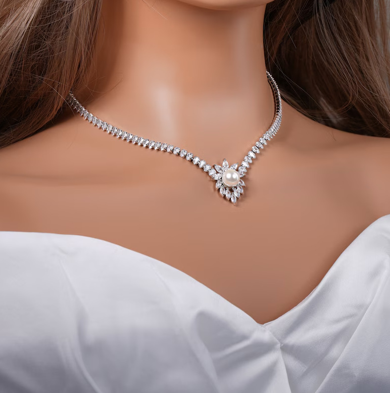 Amazon New Pearl Zircon Necklace Earrings suit Bridal Jewelry Fashion Temperament Jewelry suit Dress