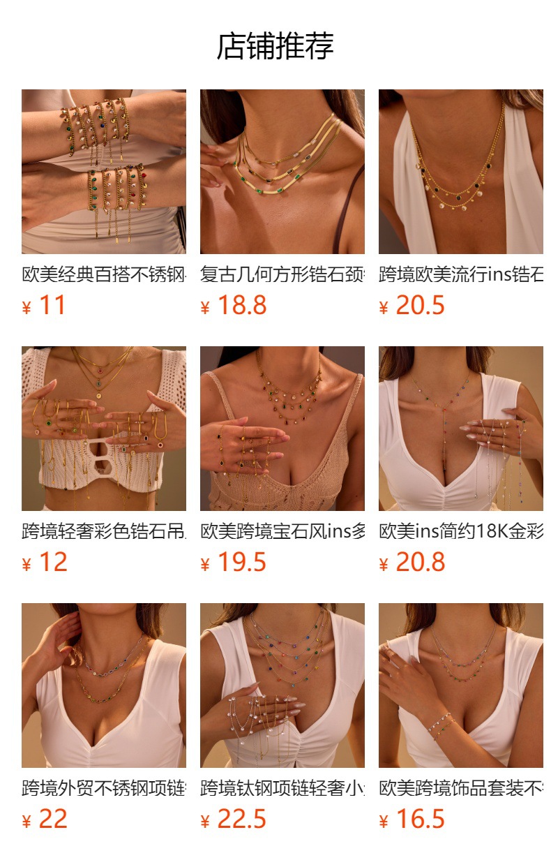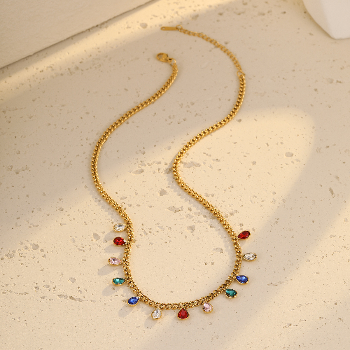 European and American Classic Stainless Steel Colorful Rhinestone Tassel Necklace for Women Stacked Fashion Versatile Titanium Steel Clavicle Chain Jewelry