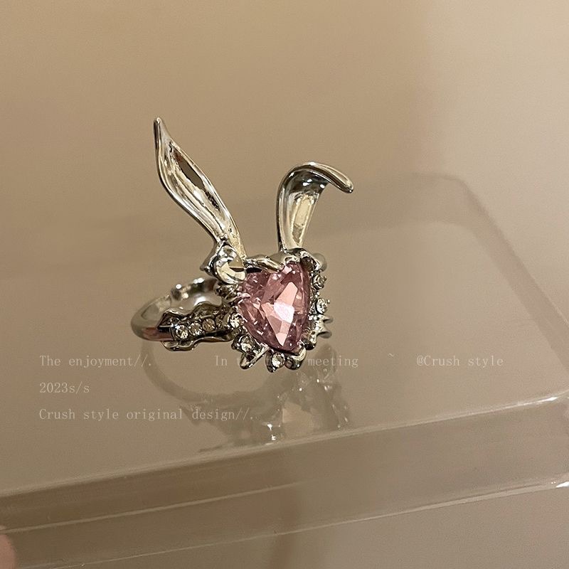 Creative Love Rabbit Open Ring Female Niche Design Food Finger Ring Ins Trendy Fashion Personalized Ring All-Match