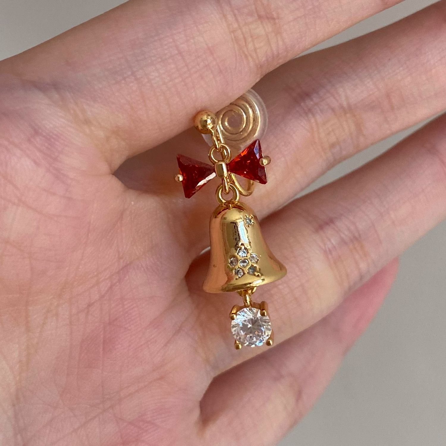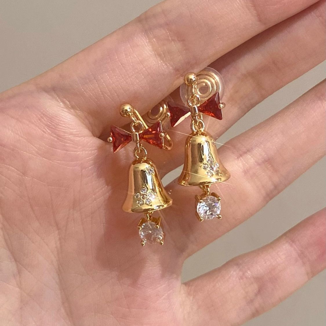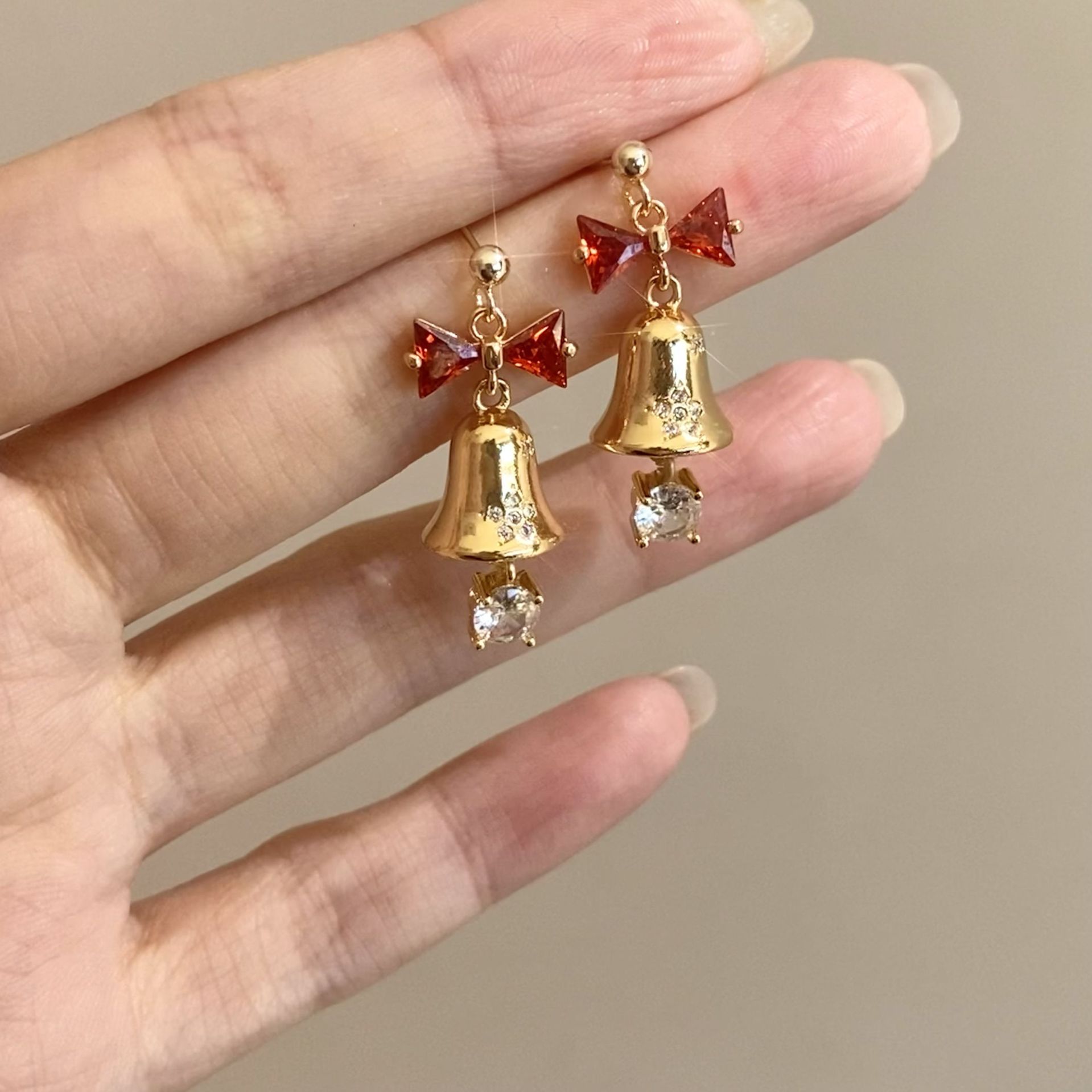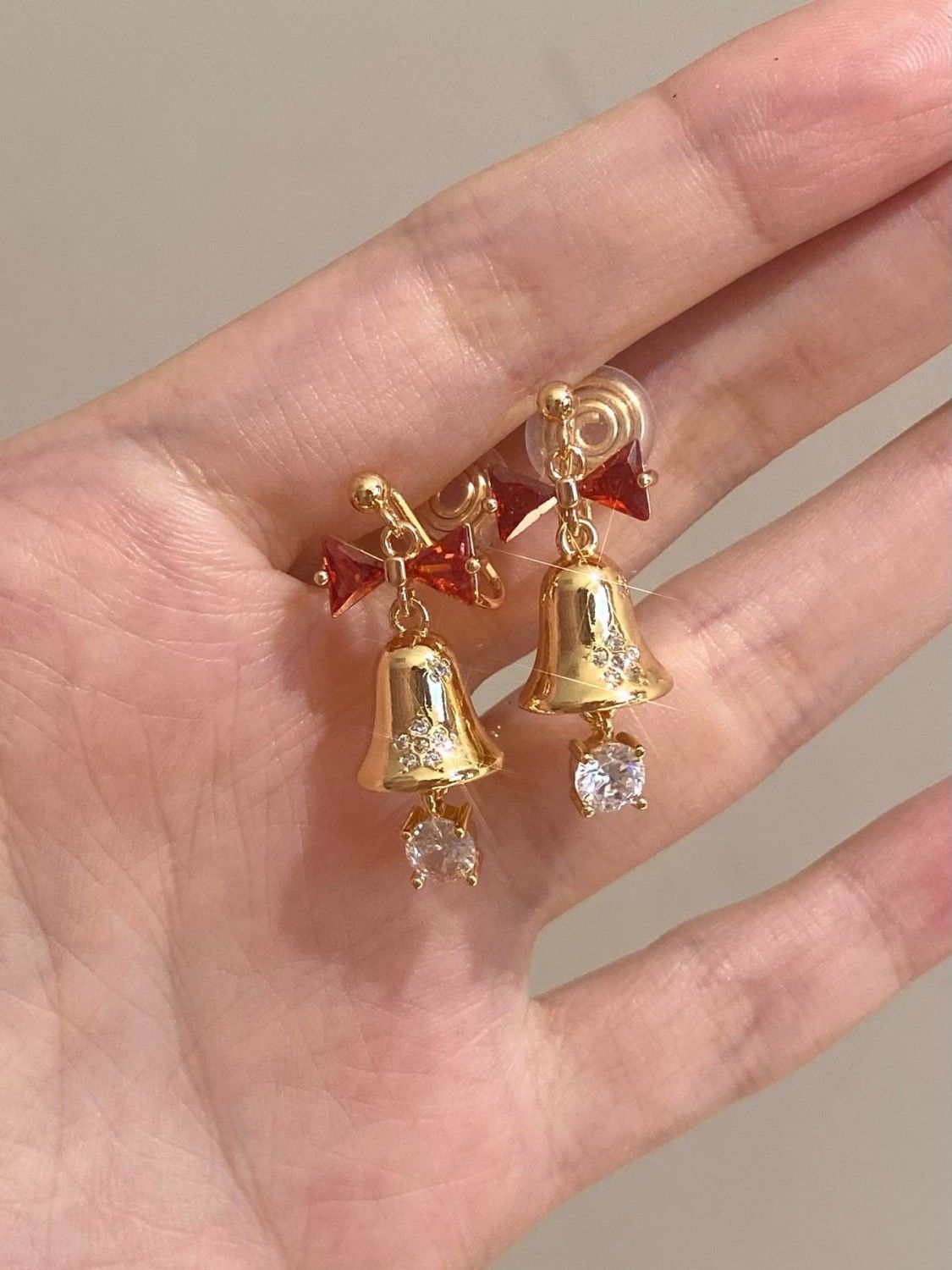 Color: Gold model-christmas bell butterfly-1 pair of earrings