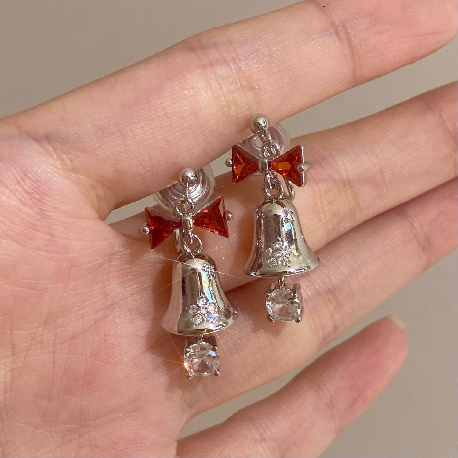Color: Silver model-christmas bell butterfly-1 pair of earrings