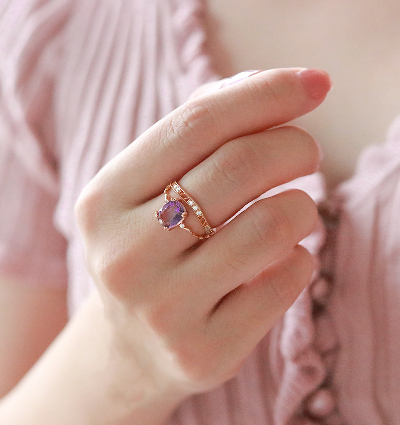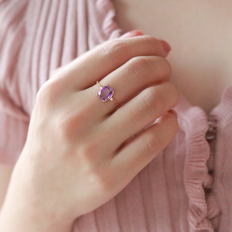 Explosive Gentle Imitation Amethyst Square Cut Shining Imitation Zircon Wave Light Luxury All-match Ring Fashionable Gentle Women