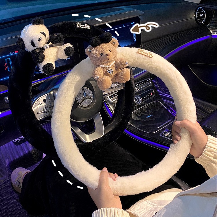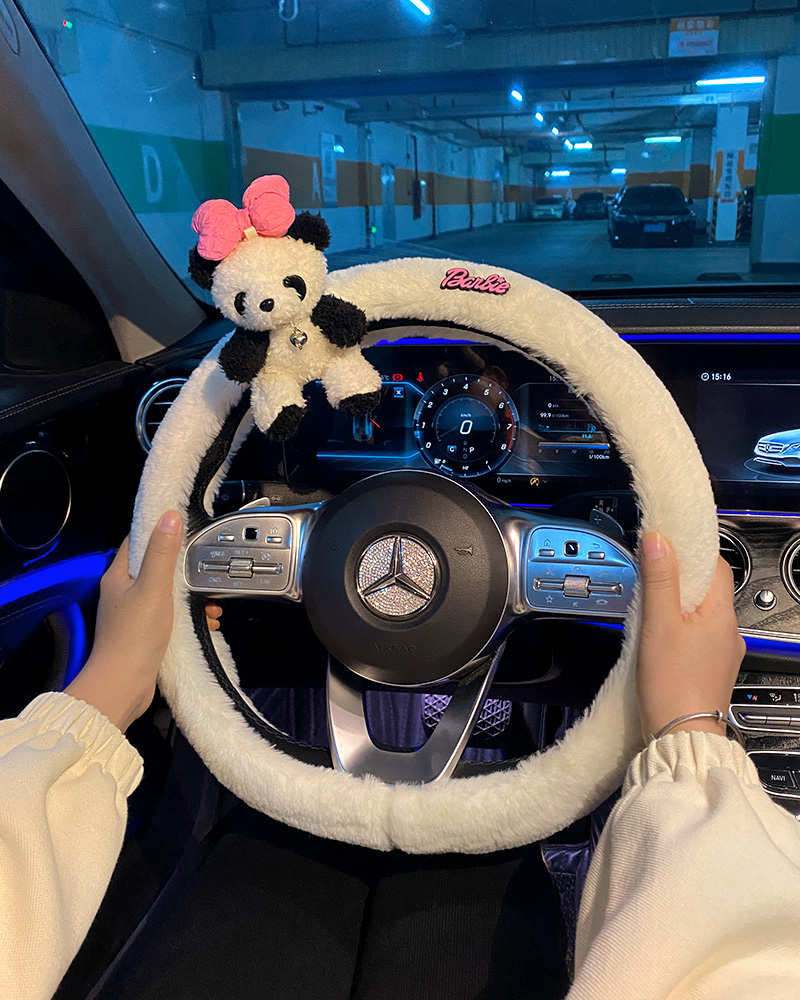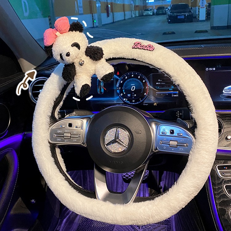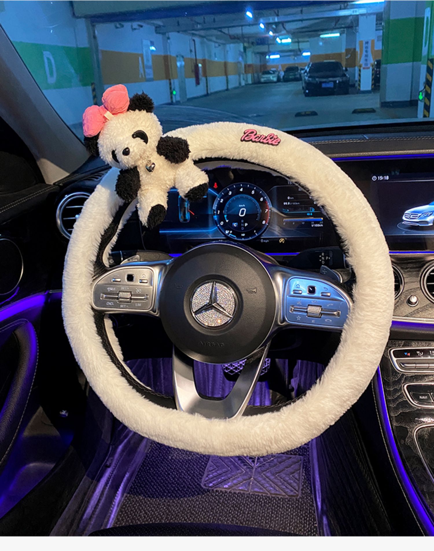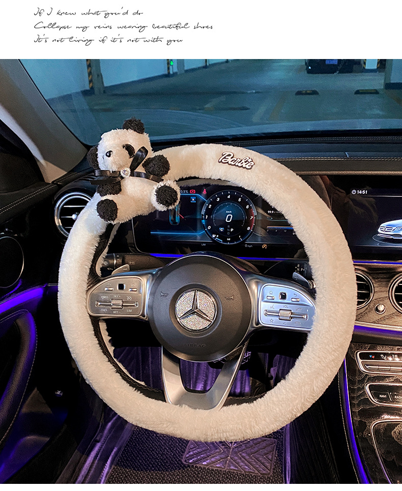 Color: Rice-edged black knot + black long hair steering wheel cover