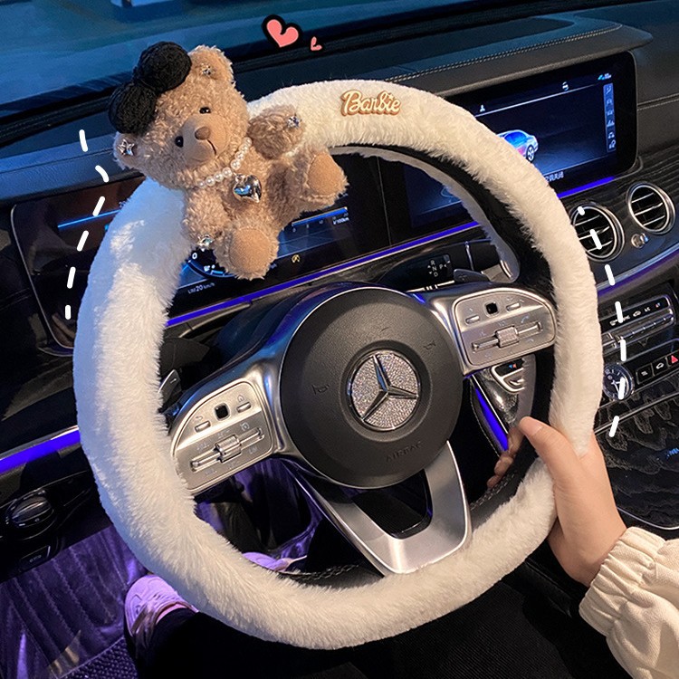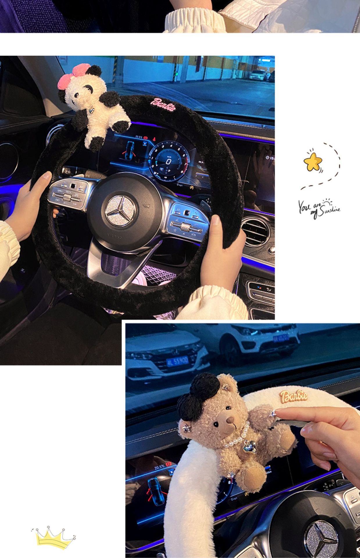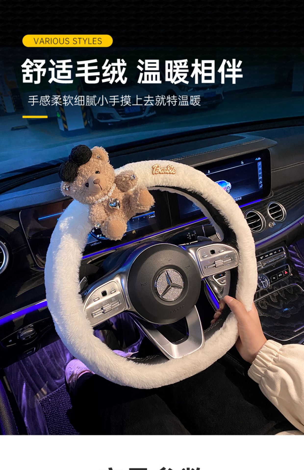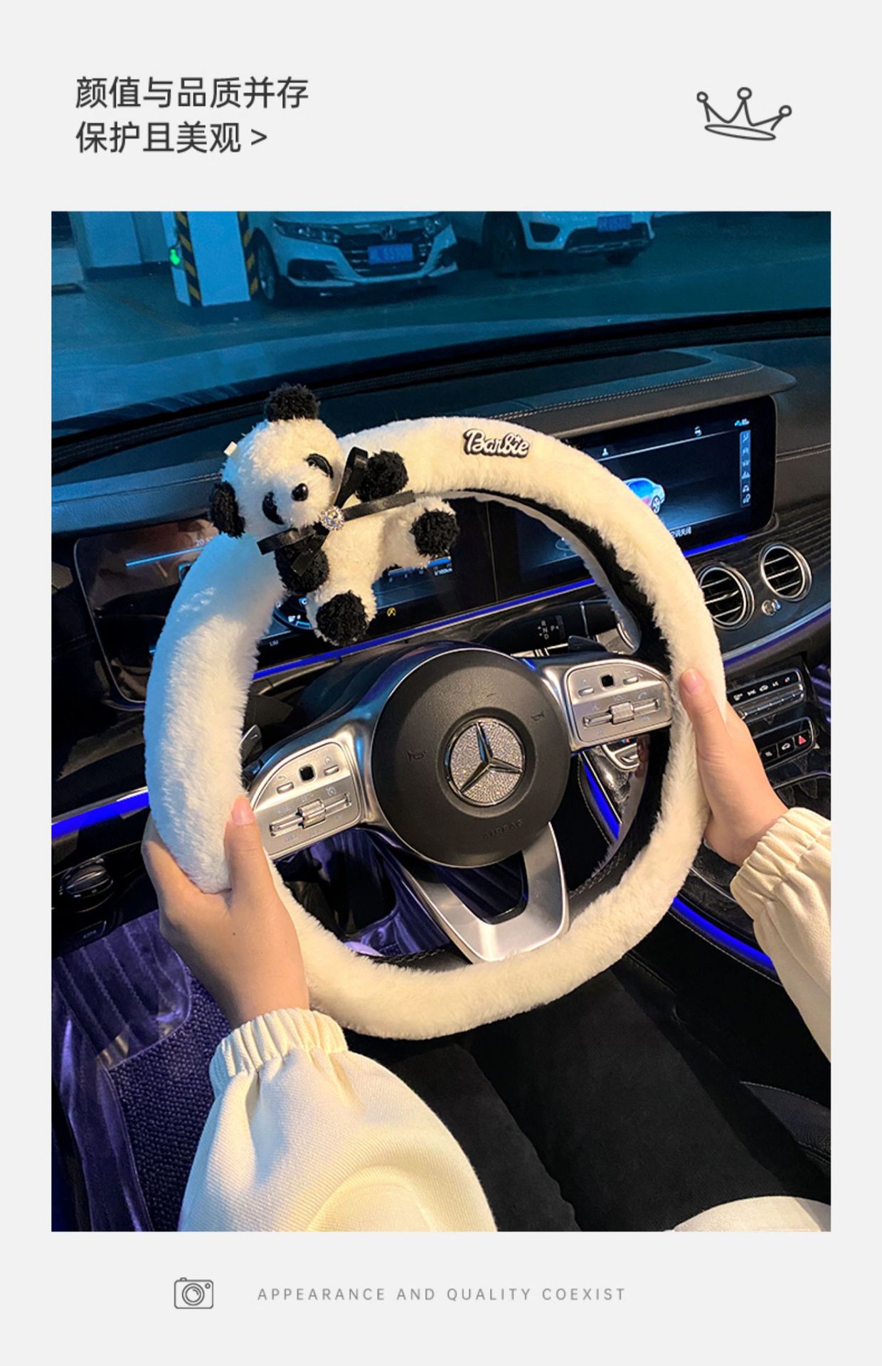 Color: Rice-edged black knot + black long hair steering wheel cover