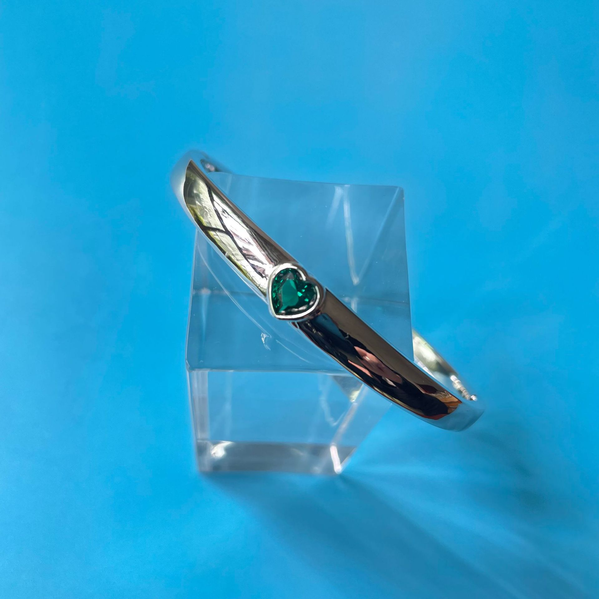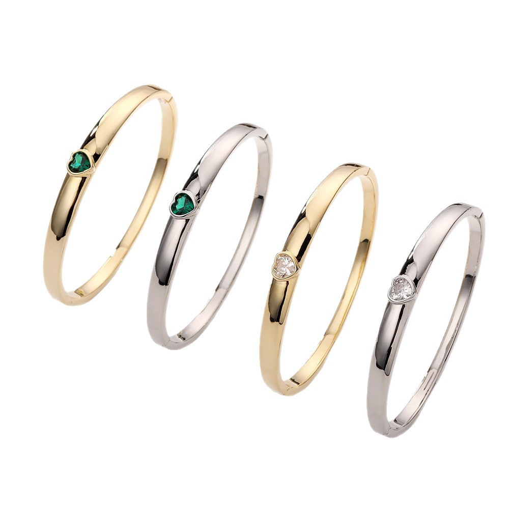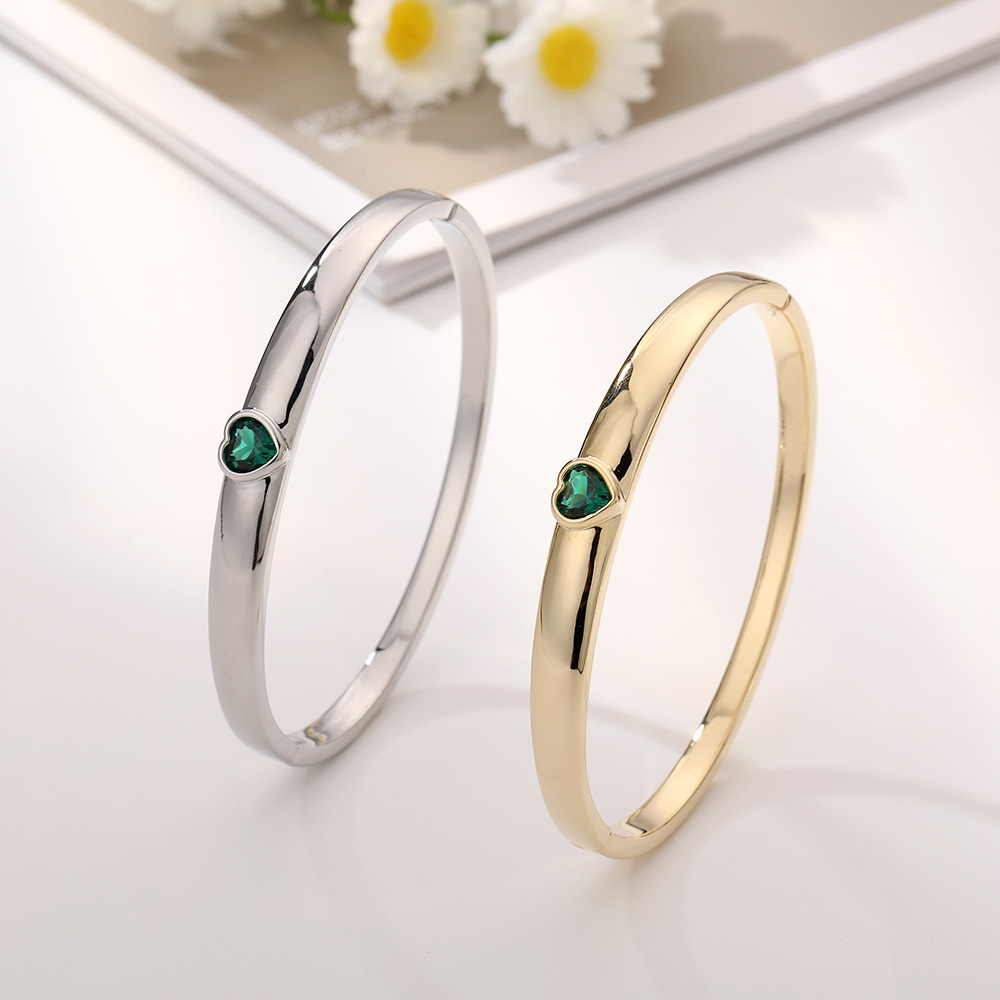 Korean Style Plain Emerald Heart Bracelet with Diamonds, Trendy Internet Celebrity Fashion Real Gold Electroplated Jewelry, High-End Accessories