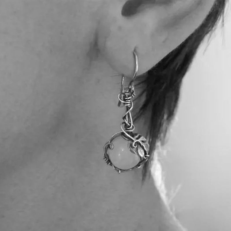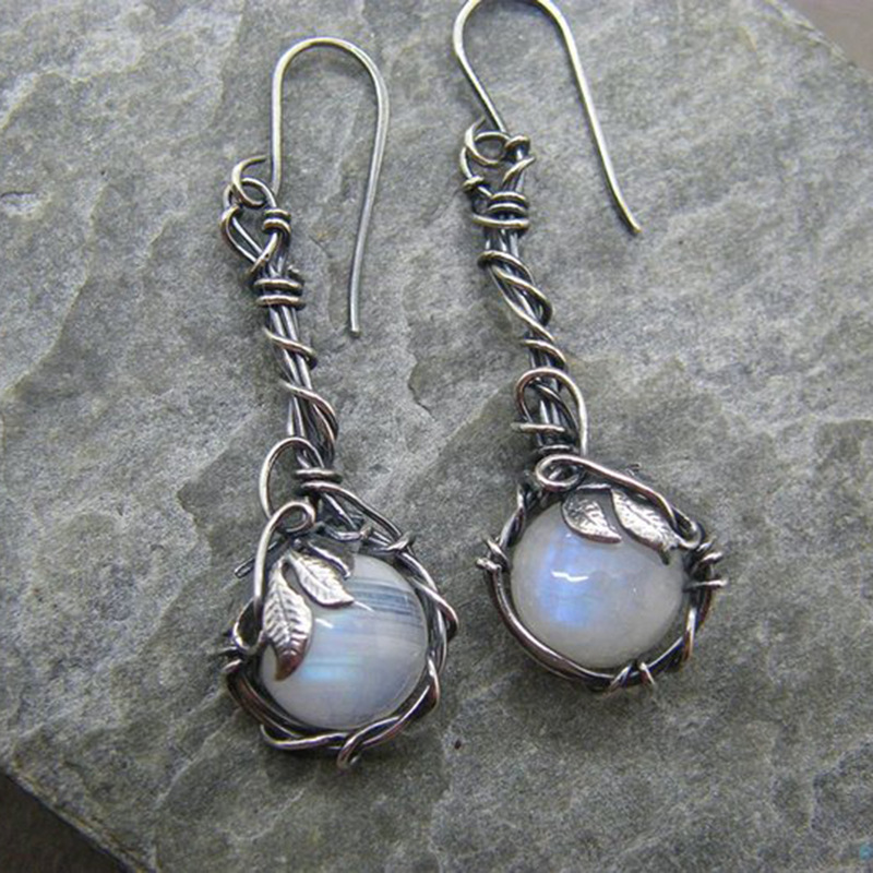 Vintage Metal Winding Plant Leaf Distinctive Earrings Cross-border Creative Hot-selling Inlaid Moonstone Earrings for Women