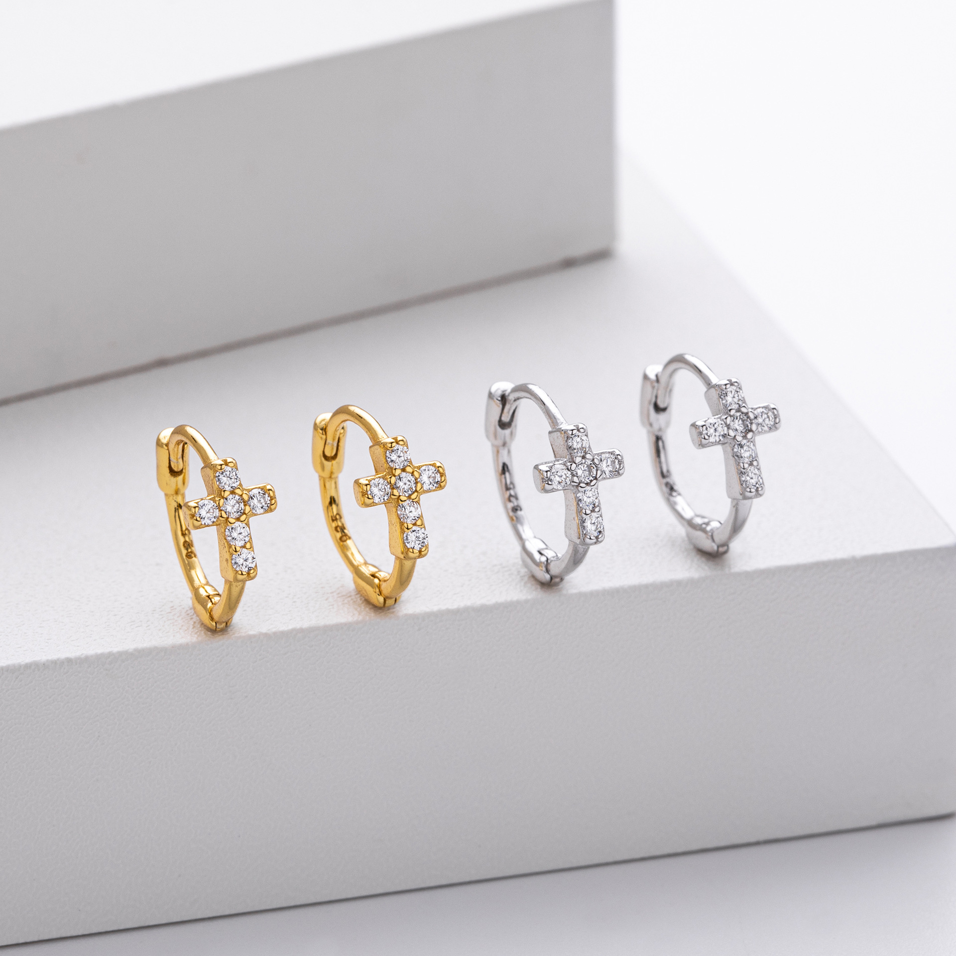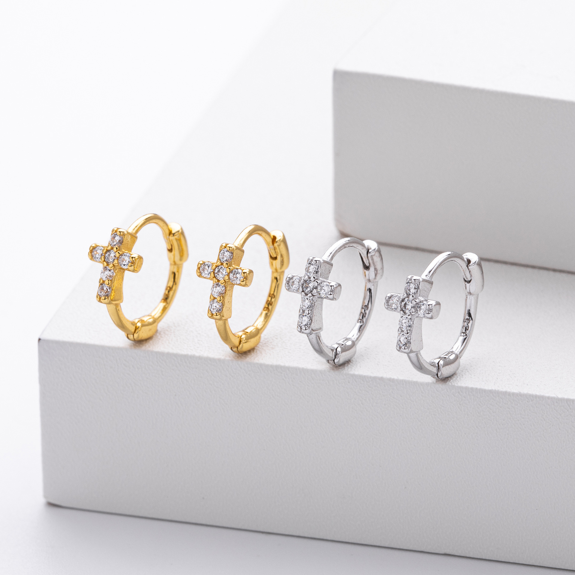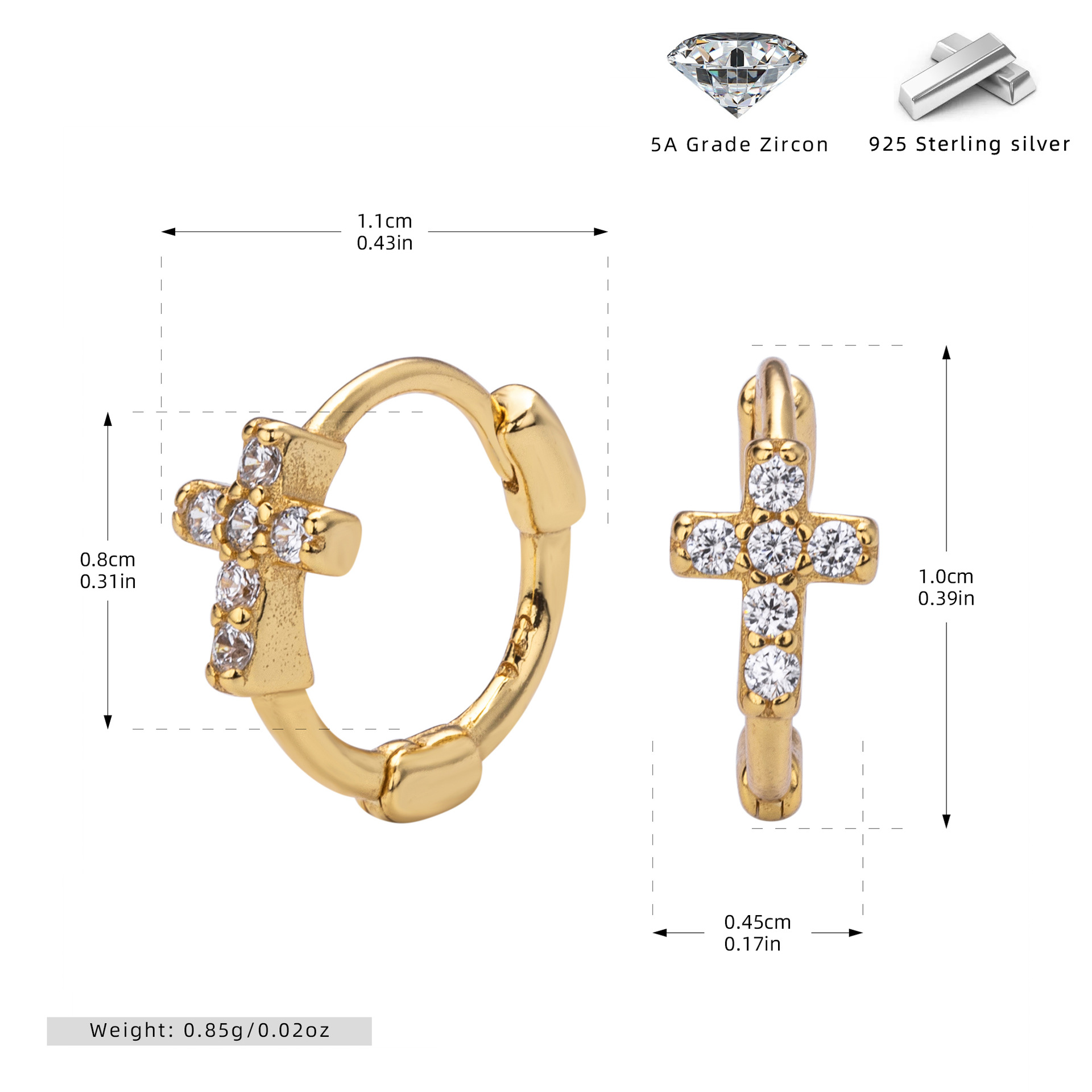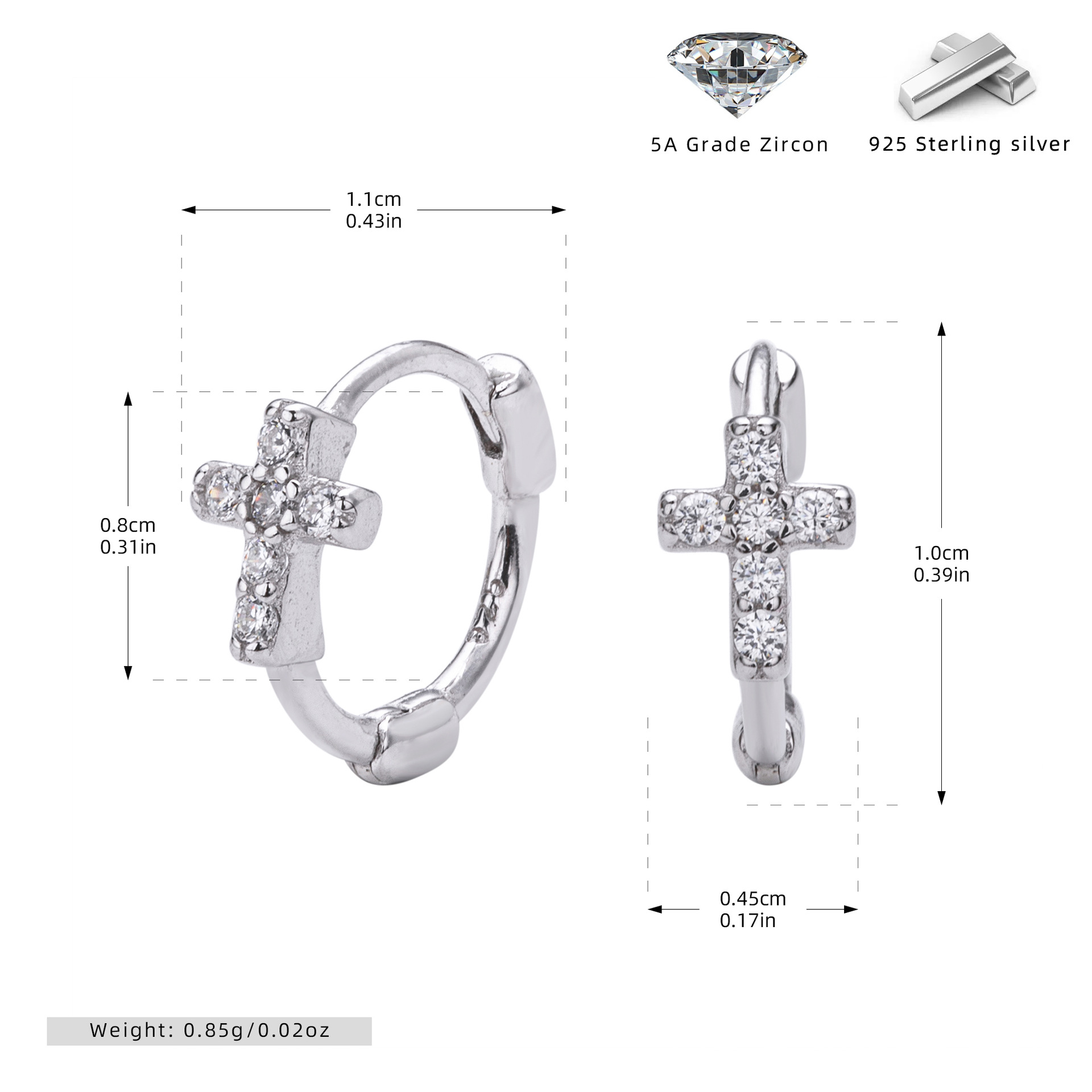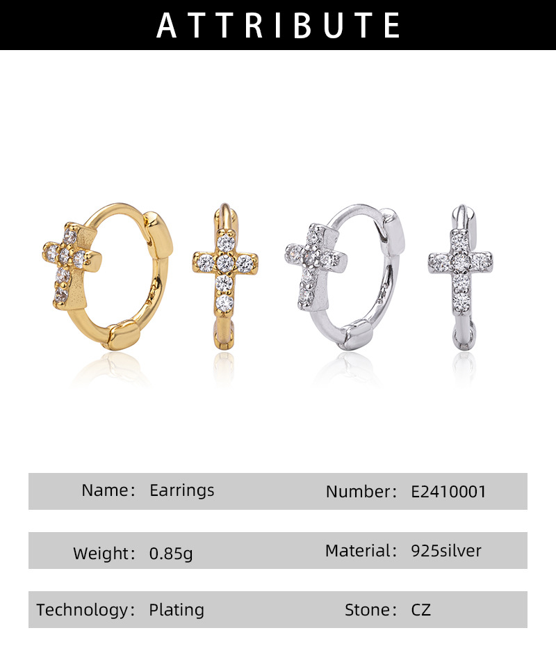 Cross-border French S925 Sterling Silver European and American Personality Fashion Zirconium Cross Ear Buckle Versatile Explosions Popular Earrings