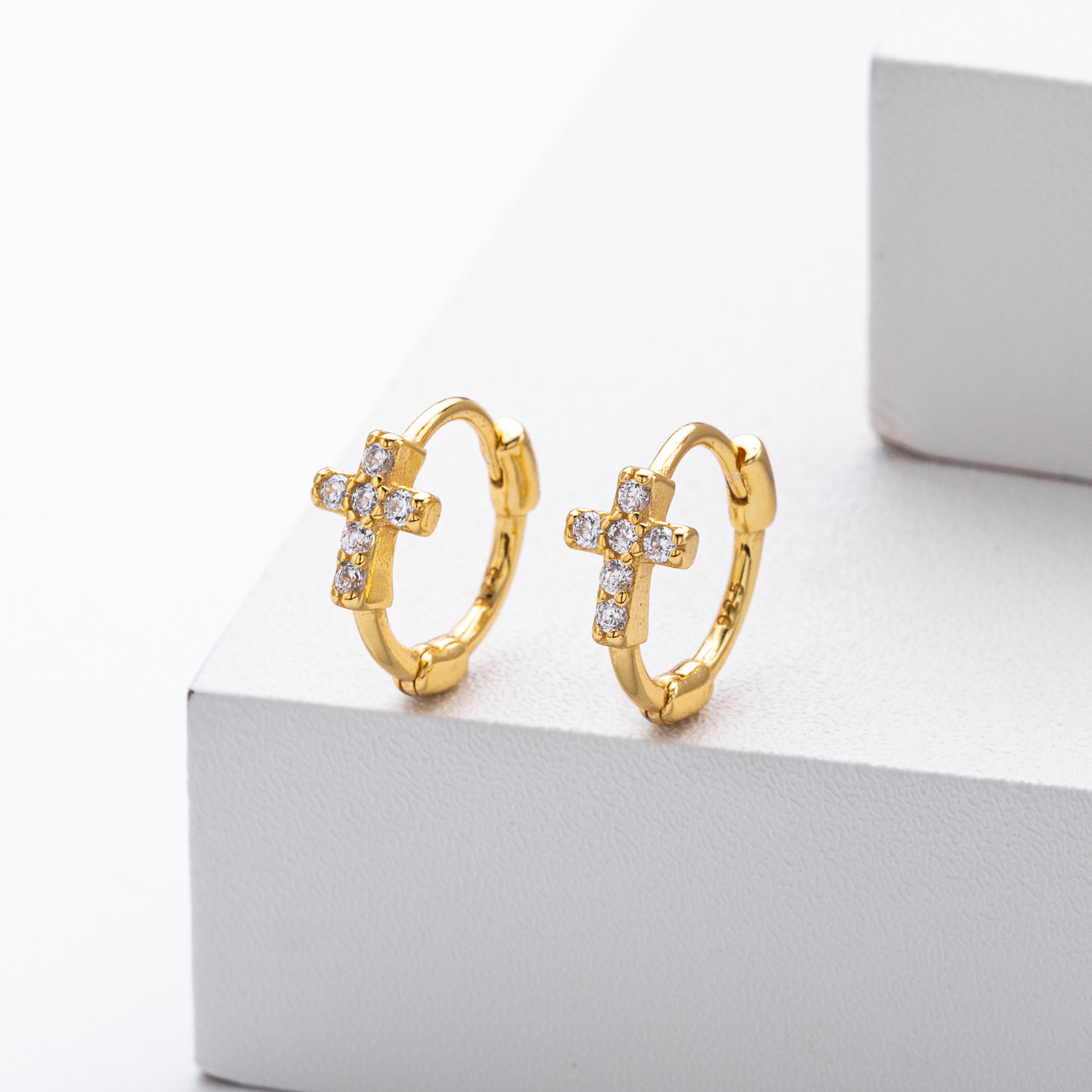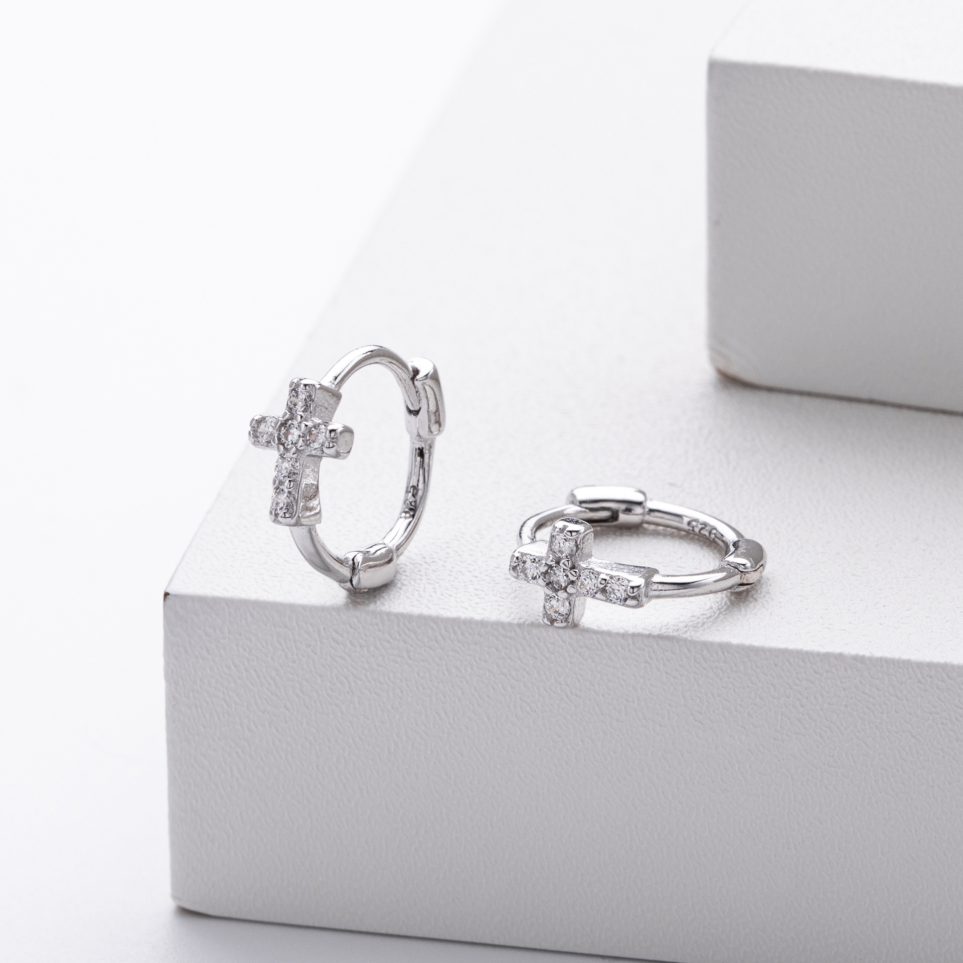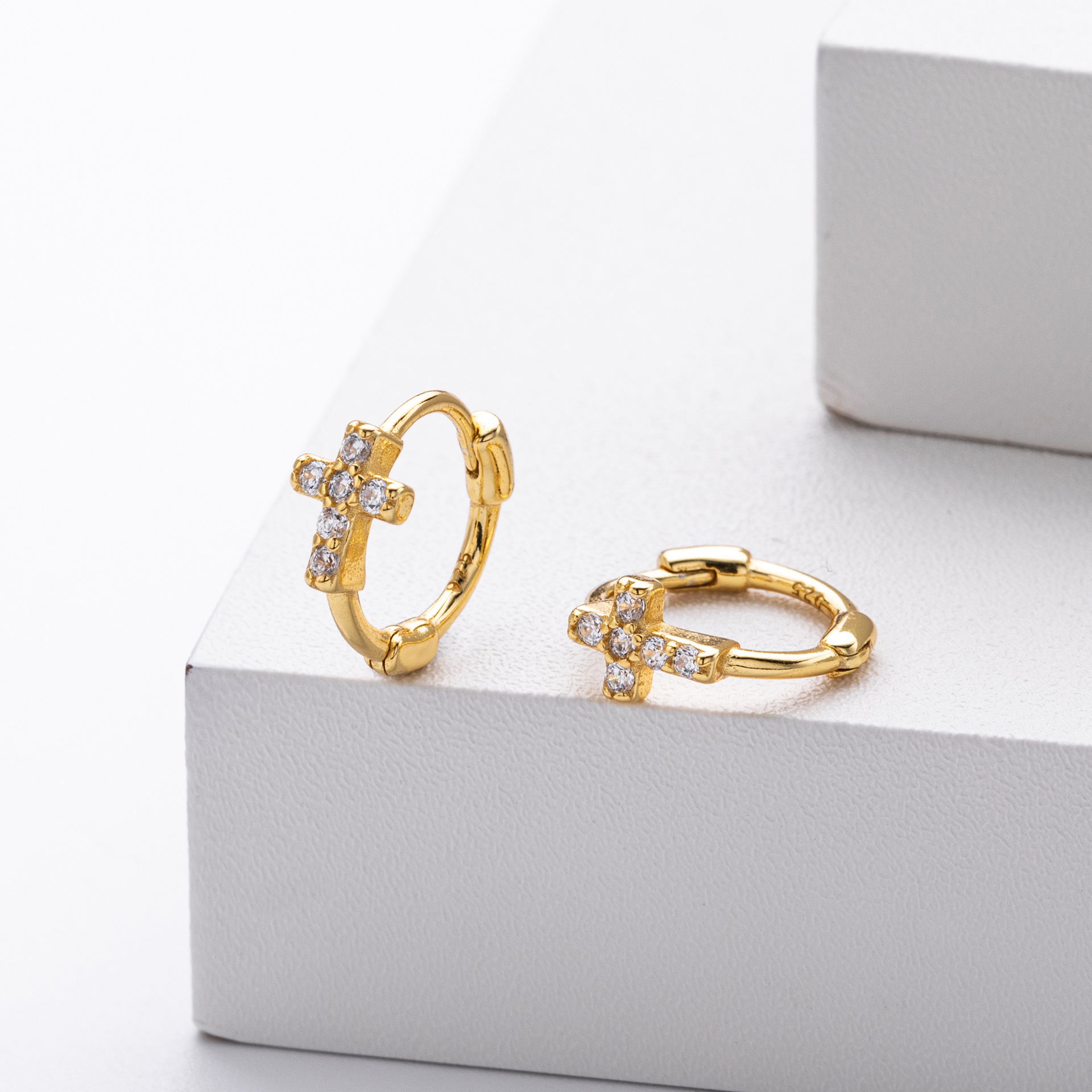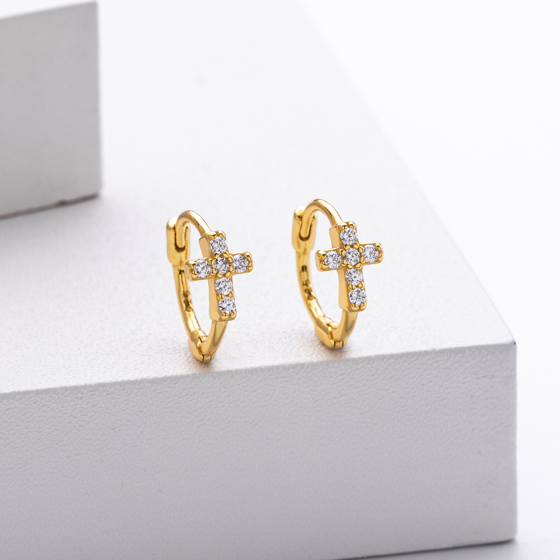 Cross-border French S925 Sterling Silver European and American Personality Fashion Zirconium Cross Ear Buckle Versatile Explosions Popular Earrings