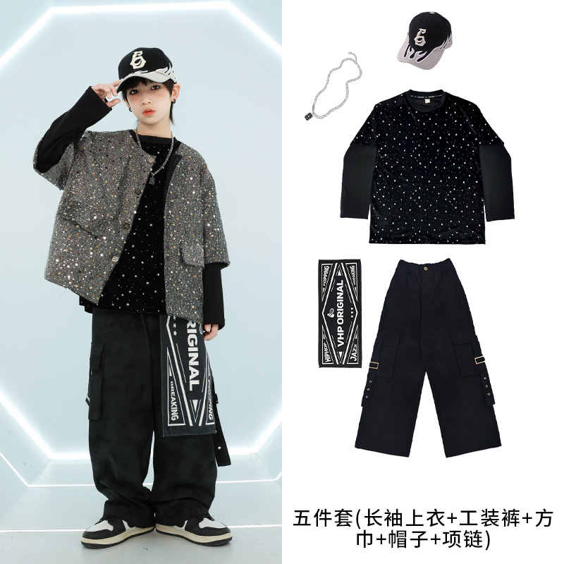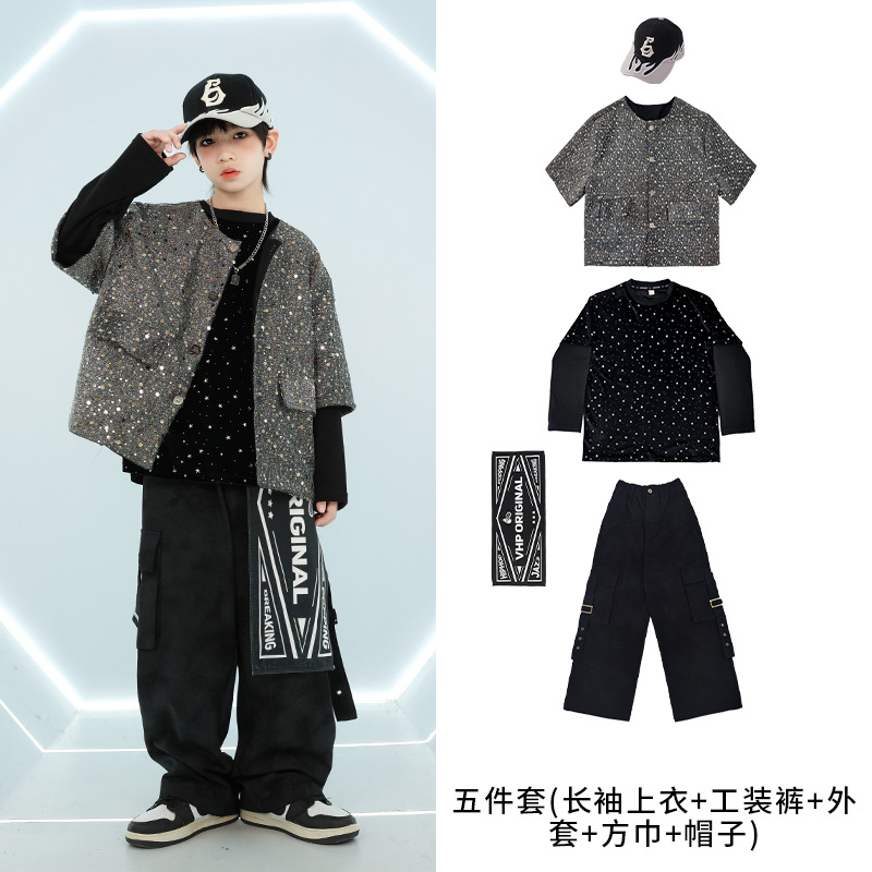Color: Five-piece set [top + trousers + jacket + square scarf + hat]