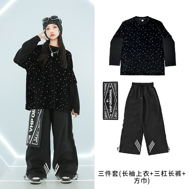 Color: Three-piece set [top + three-bar trousers + square scarf]
