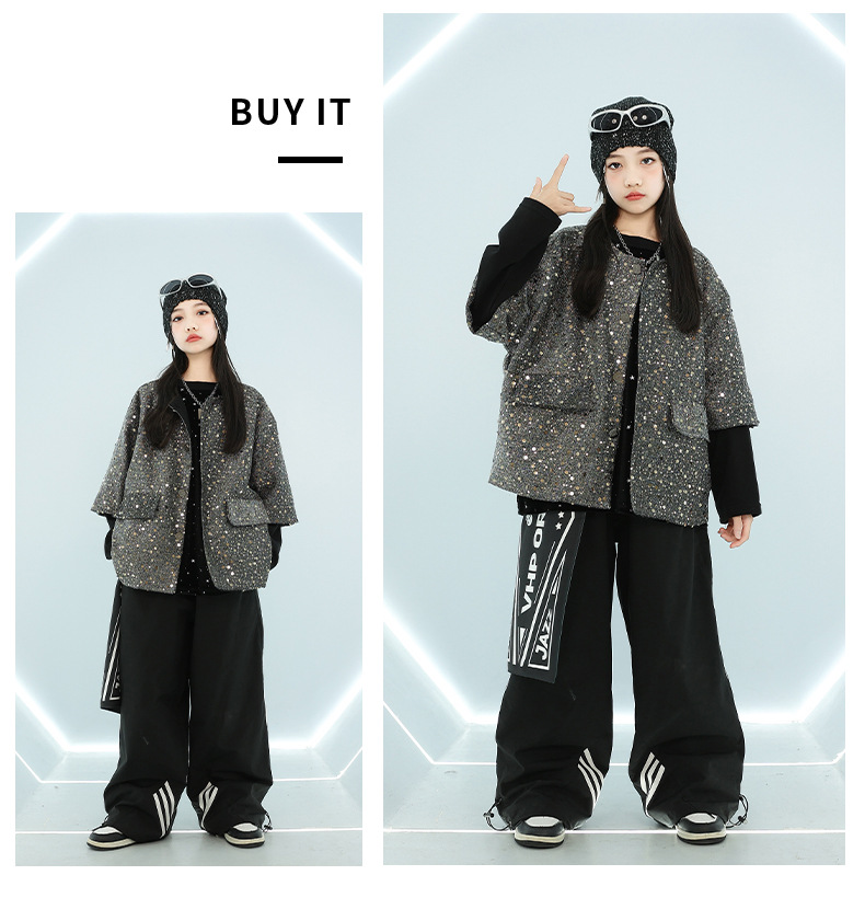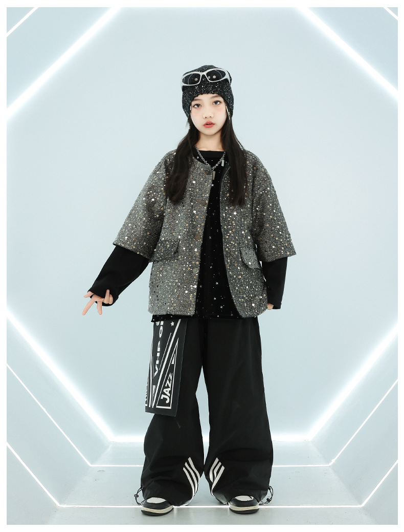 Color: Six-piece set [top + three-bar trousers + jacket + square scarf + knitted hat + necklace]