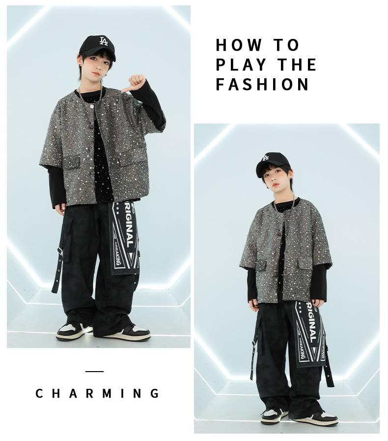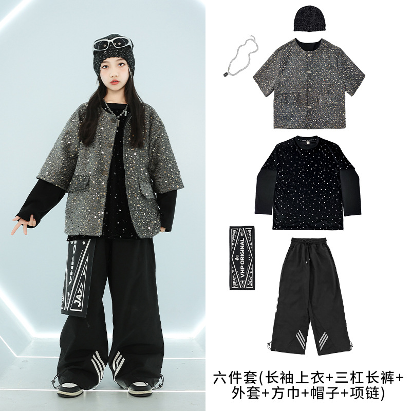 Color: Six-piece set [top + trousers + jacket + square scarf + hat + necklace]