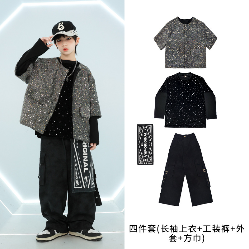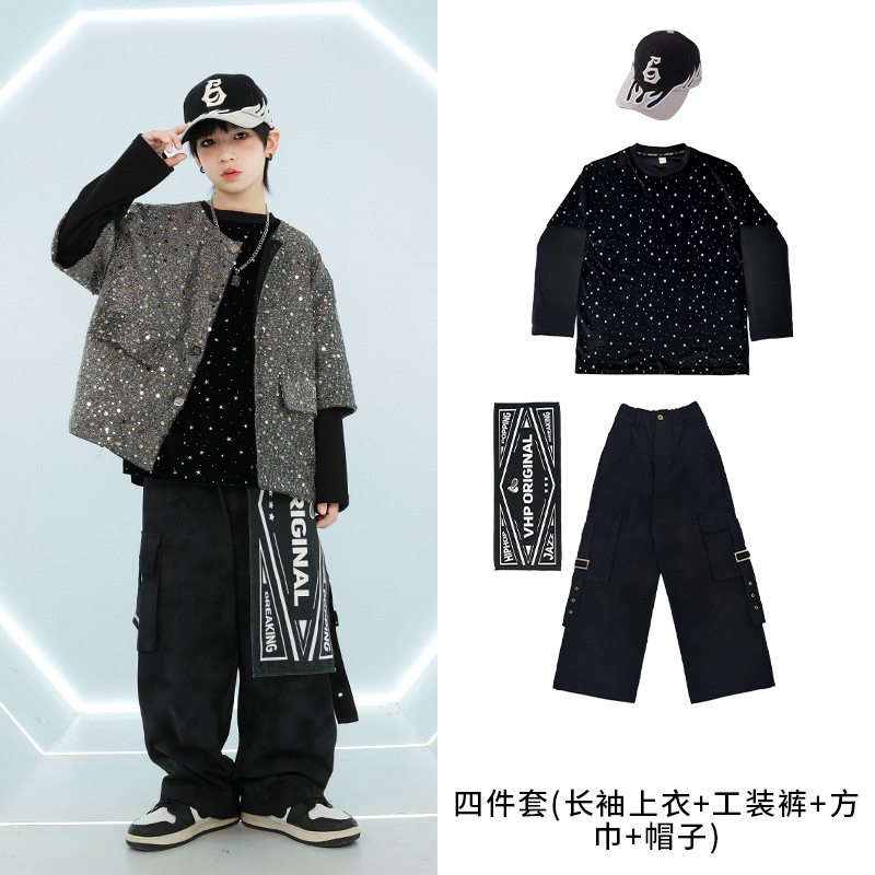 Color: Four-piece set [top + trousers + jacket + square scarf]
