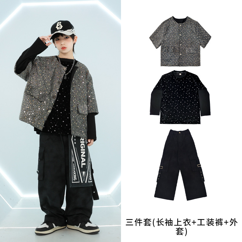 Color: Three-piece set [top + three-bar trousers + jacket]